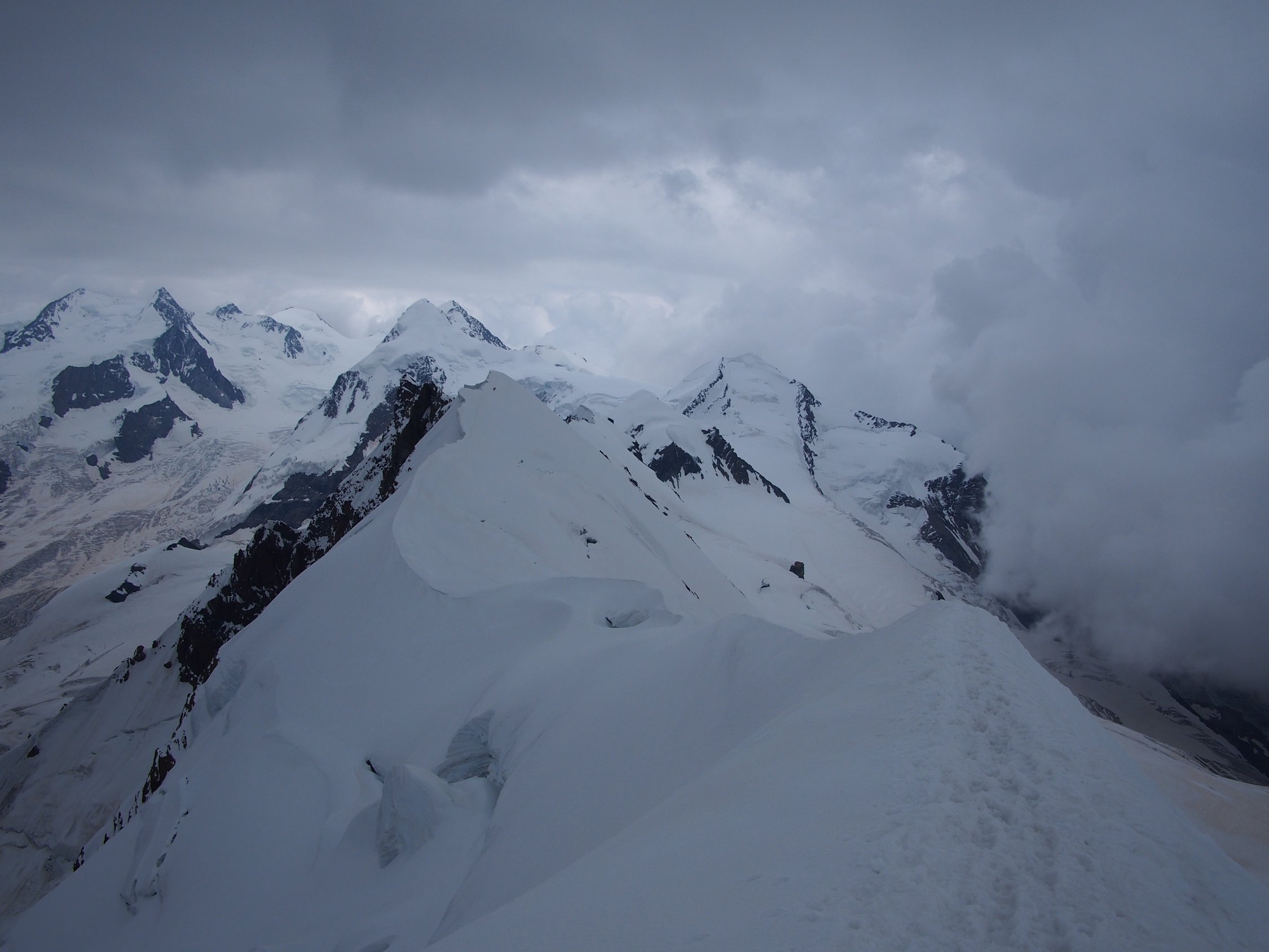 Ab Hauptgipfel Breithorn deutliche Wetterverschlechterung mit leichtem Niederschlag - unten auf dem Plateau gleich sehr wenig Sicht und Orientierung.