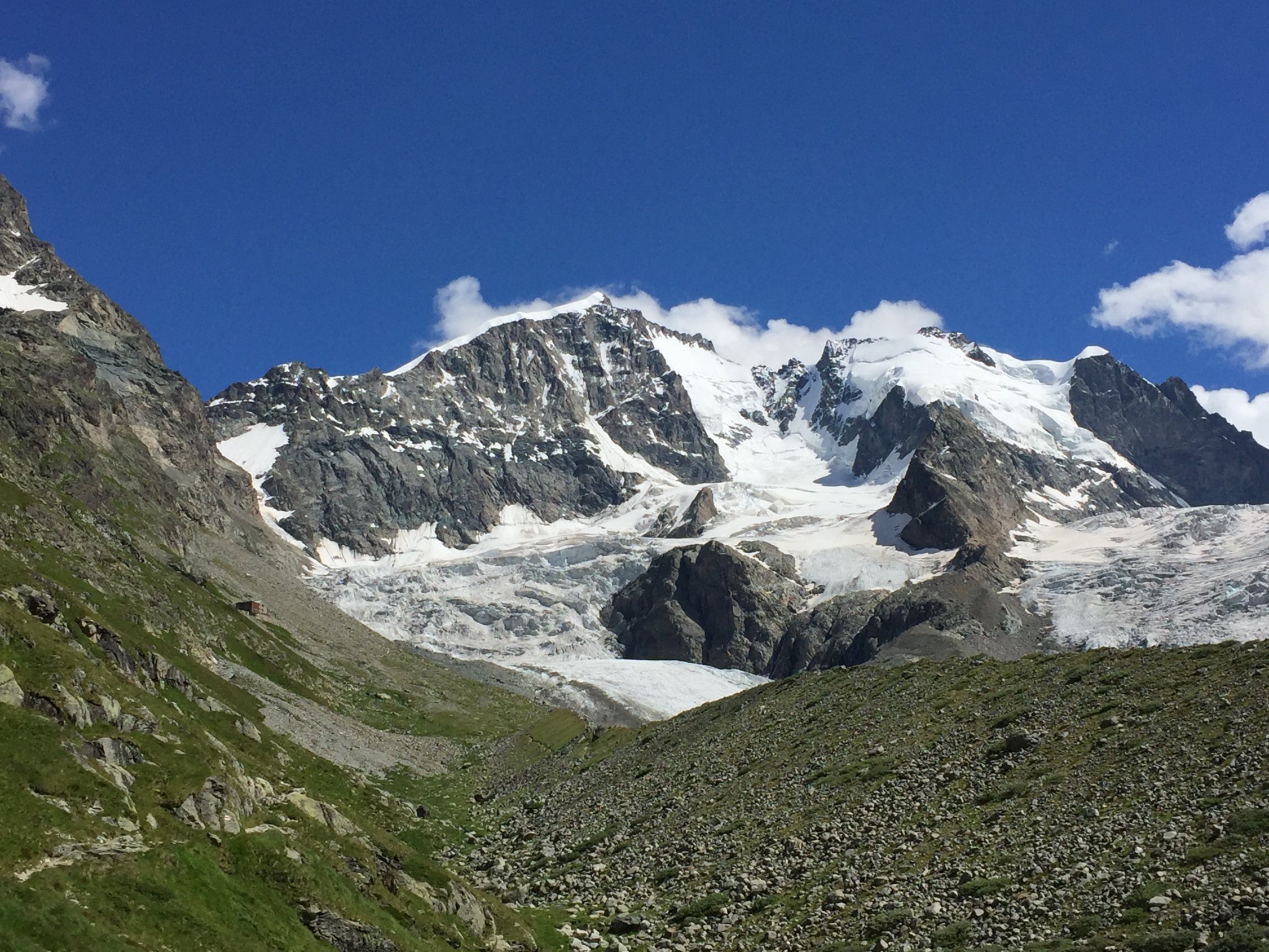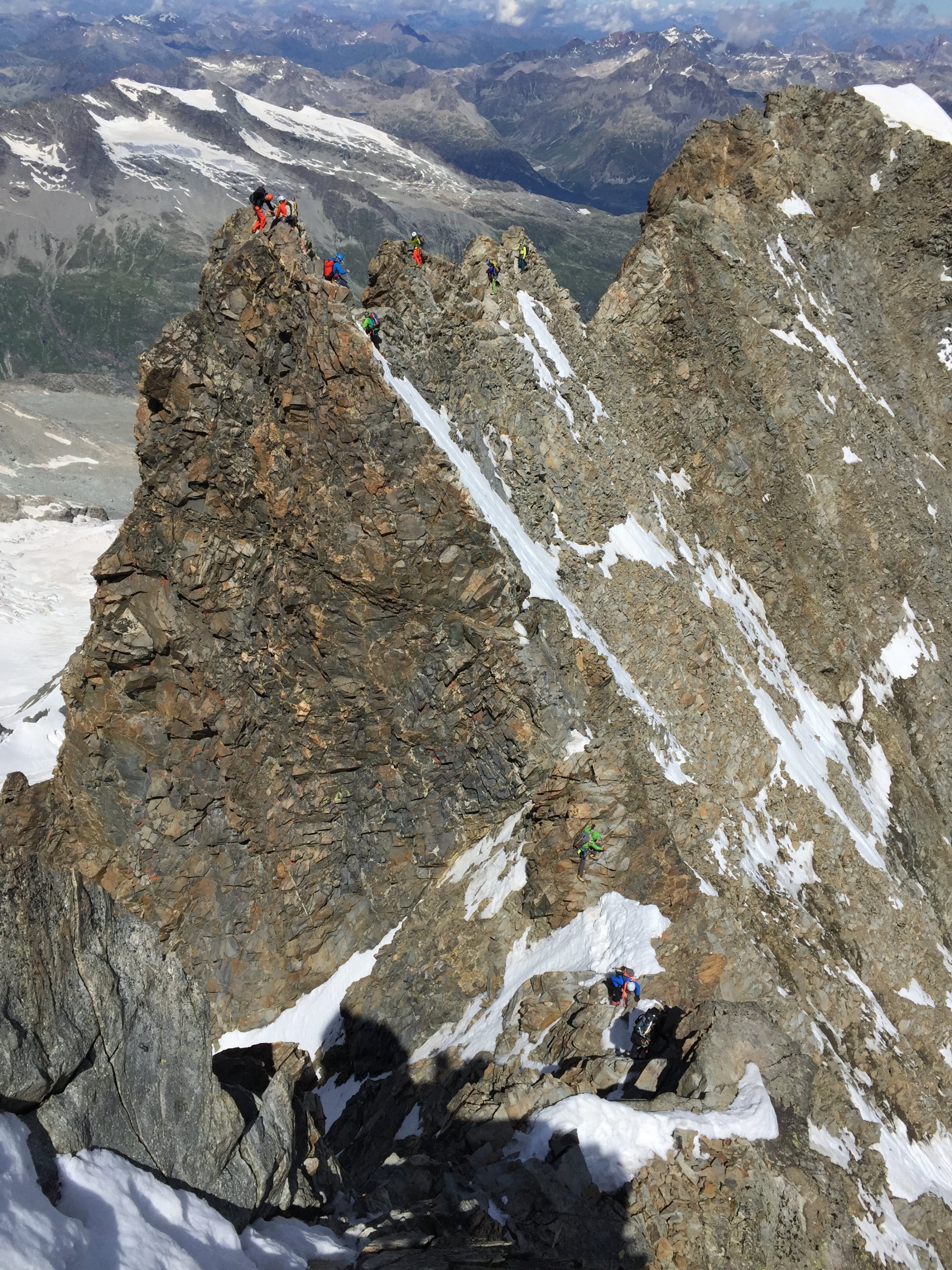 Wir hatten anschließend die Palü-Überschreitung am Sonnatg geplant. Aus Wettergründen dann aber 9:00 Uhr ab Marco-e-Rosa gestartet und über den Fortezza-Grat zur Diavolleza abgestiegen. Gruß an unsere "Vorarlberger Bergfreunde"!