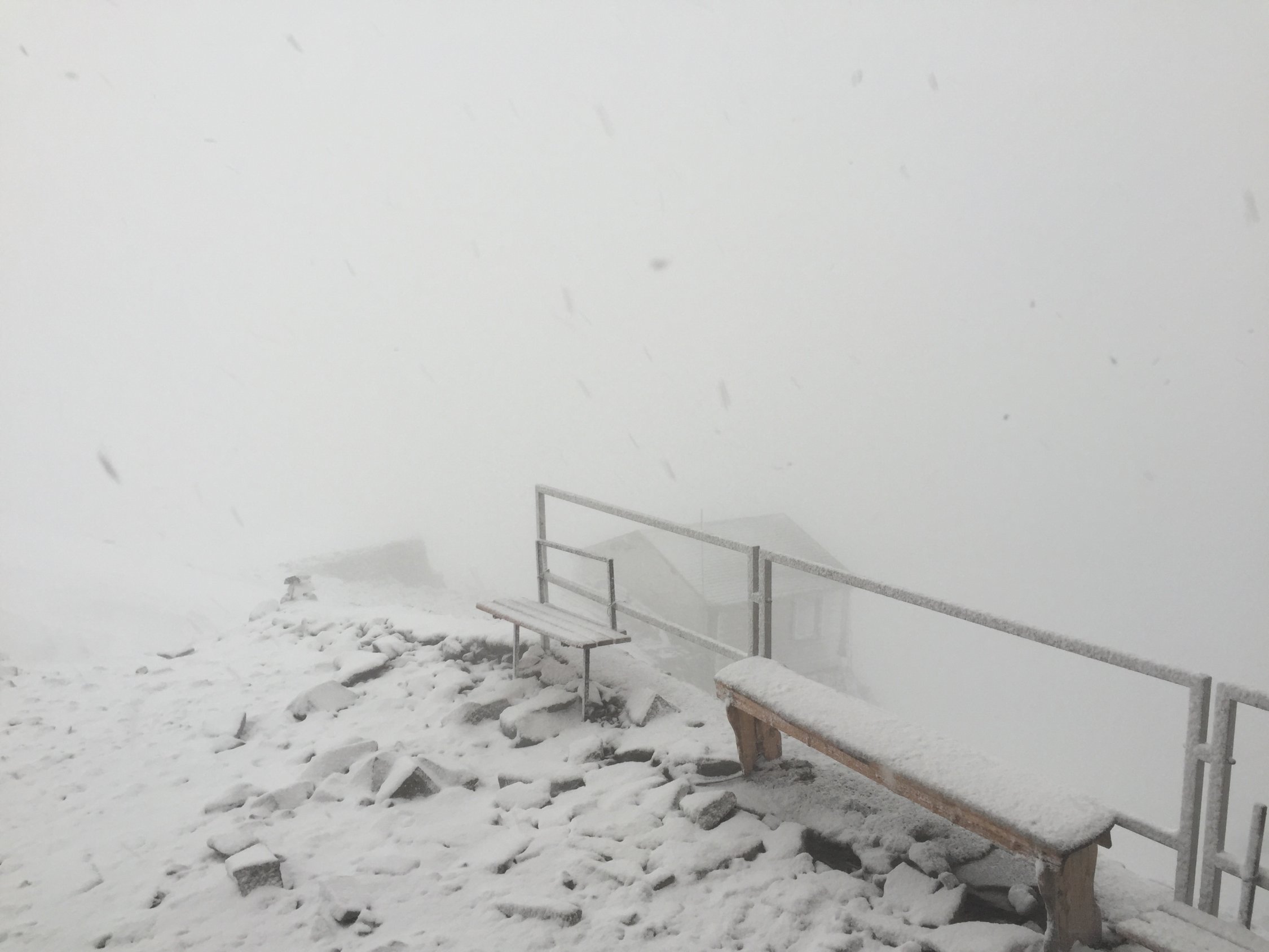 Moprgans am Sonnatg, 31.07. dann Gewitter mit Schnee und starkem Westwind. Neuschnee auf den Bellavistaterassen etwa 15cm je nach Exposition, da starker Wind. Altschnee abwechselnd tragend und stellenweise stark sumpfig.