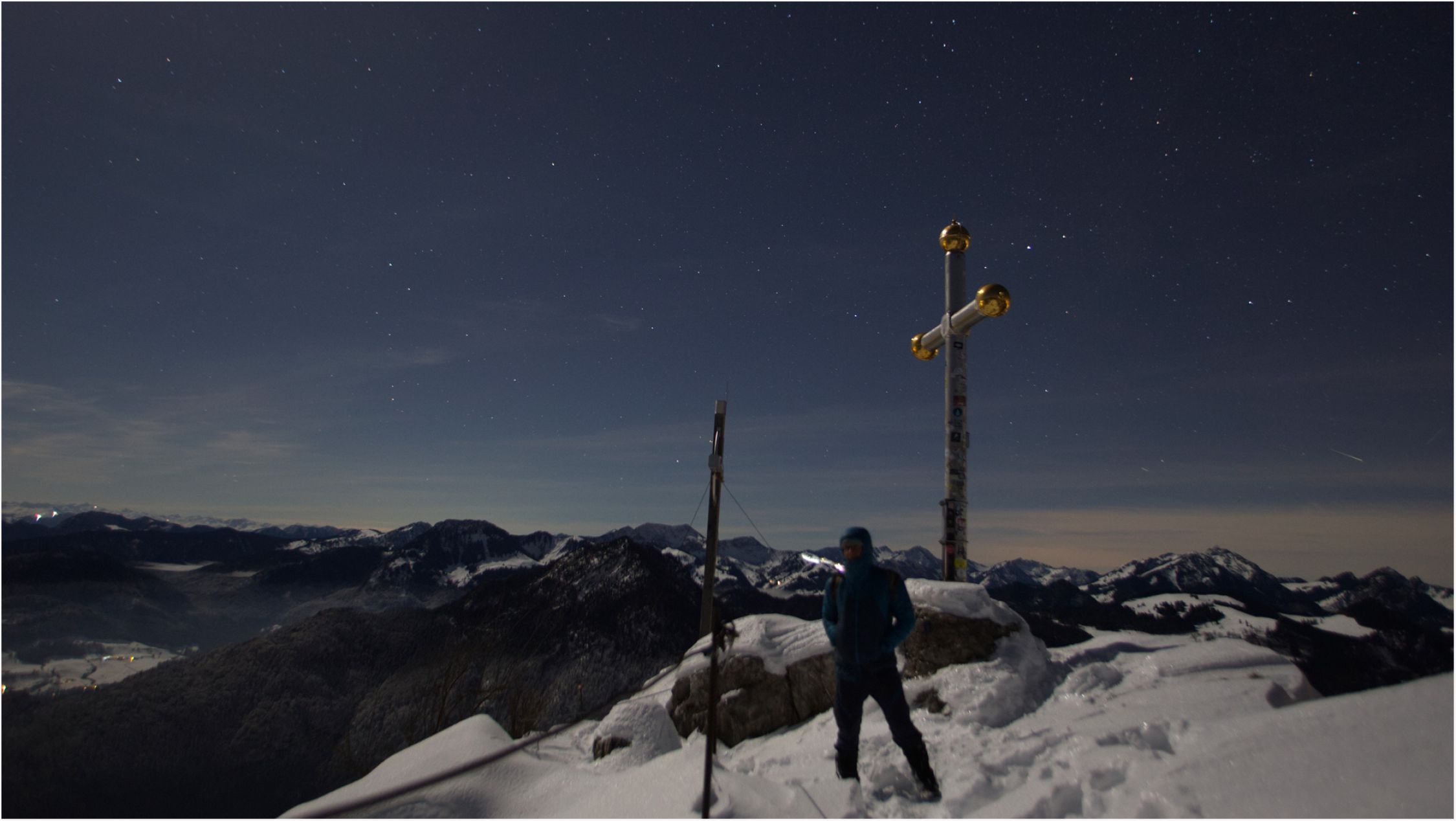 Es hat zu meiner Überraschung ziemlich viel Schnee. Es führt ein leidlicher Trampelpfad über den Forstweg zur Kranzhornalm und zum Gipfel, allerdings bricht man oberhalb der Kranzhornalm teilweise bis zu den Oberschenkeln ein.
