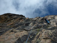Plaisir Klettern vom Feinsten. Die Route ist gut abgesichert, komfortabel - fast wie im Klettergarten. Entweder du bist entspannt am Klettern - oder du bist am Stand und bestaunst die umliegenden Berge.