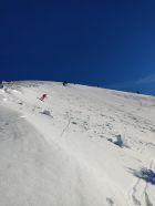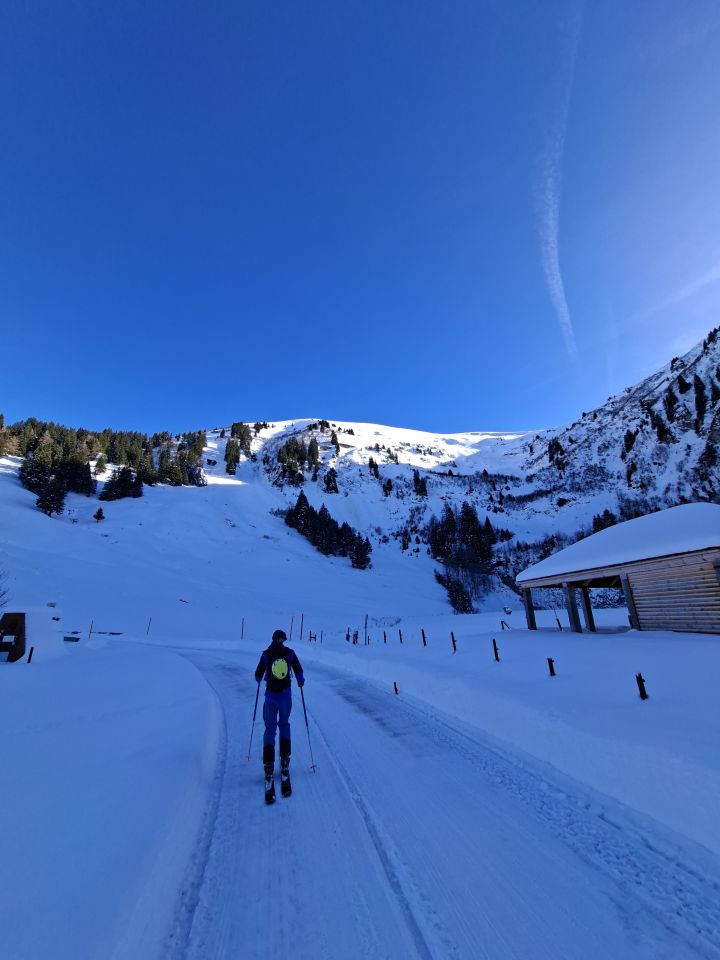 Tal sehr gut eingeschneit,kein Feindkontakt.Leider 1 Tag und Start kurz vor 13.00 Uhr auch etwas späht.Schnee recht feucht unten (Stollen beim Spuren bis oben(merci tusig Aedu).Abfahrt oben Presspulver sehr schön dann im Wechsel Pulvrig und gut zu fahrender Nasschnee.Da nirgends ganz flach giengs gut.