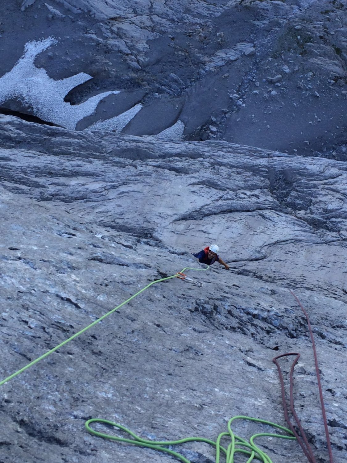 4. SL: Hammerlänge. Eine scheinbar glatte Wand, und dann hat es überall Löcher und Leisten..geil! (6c+)