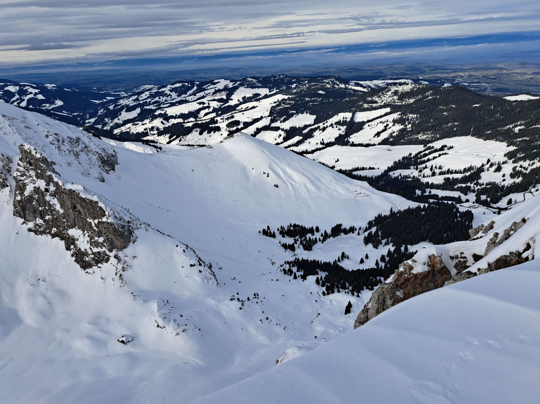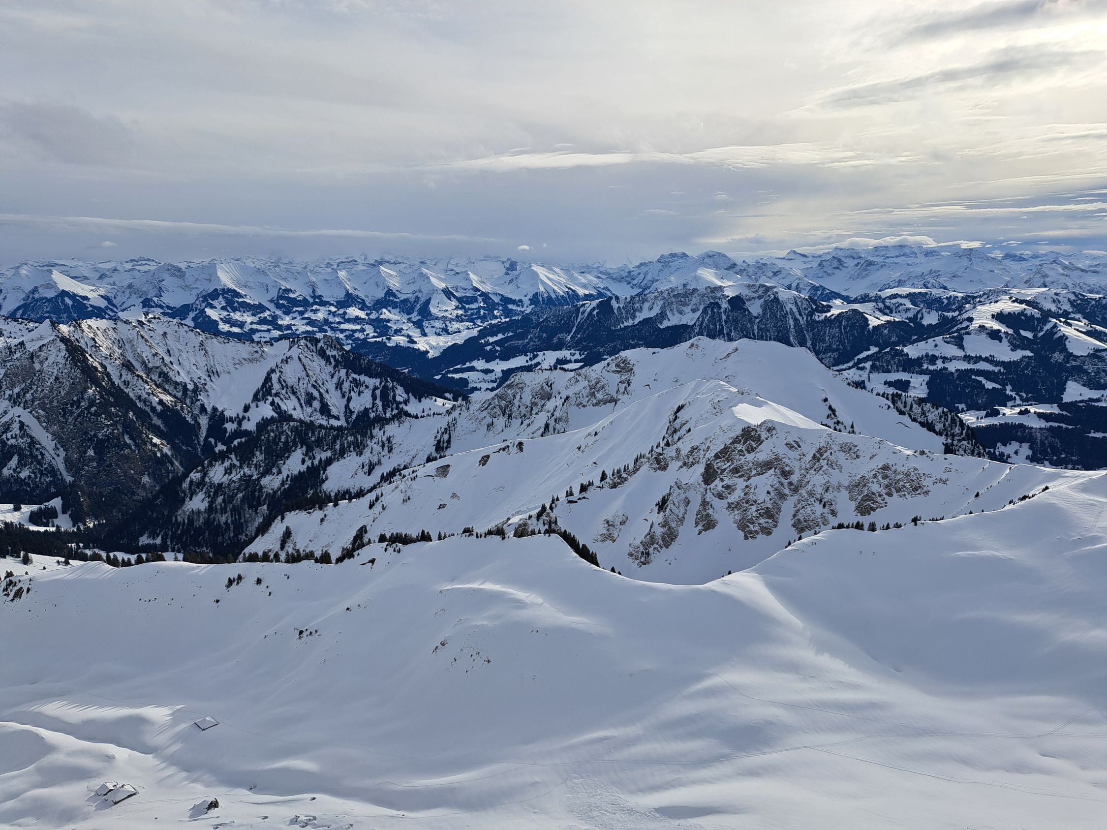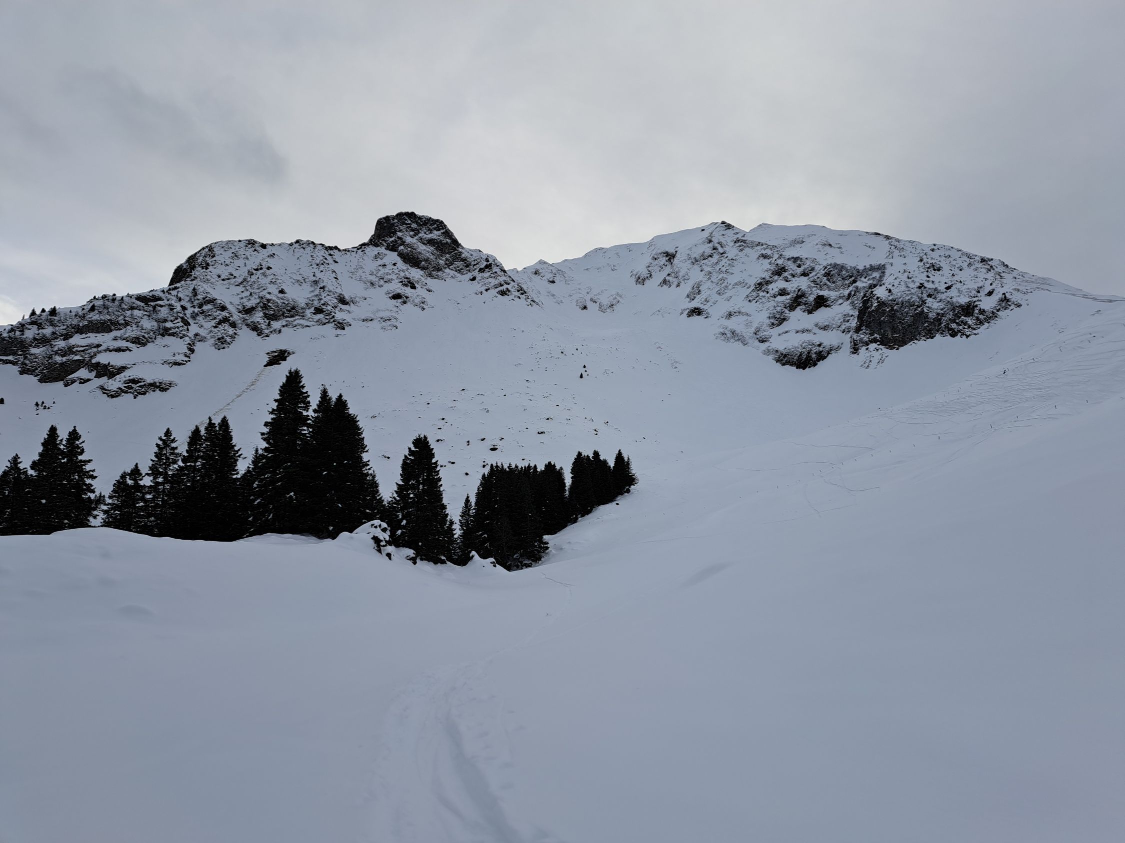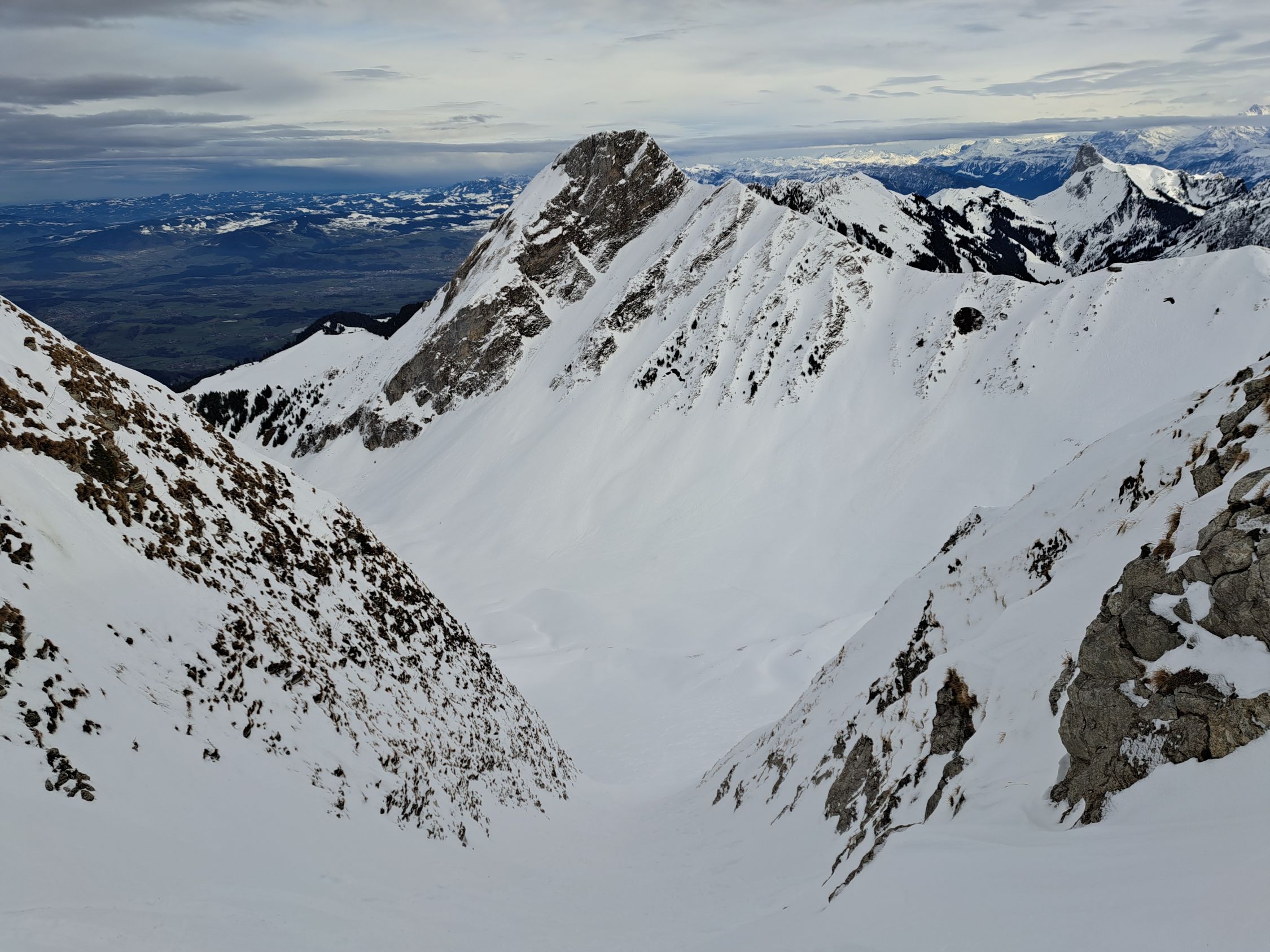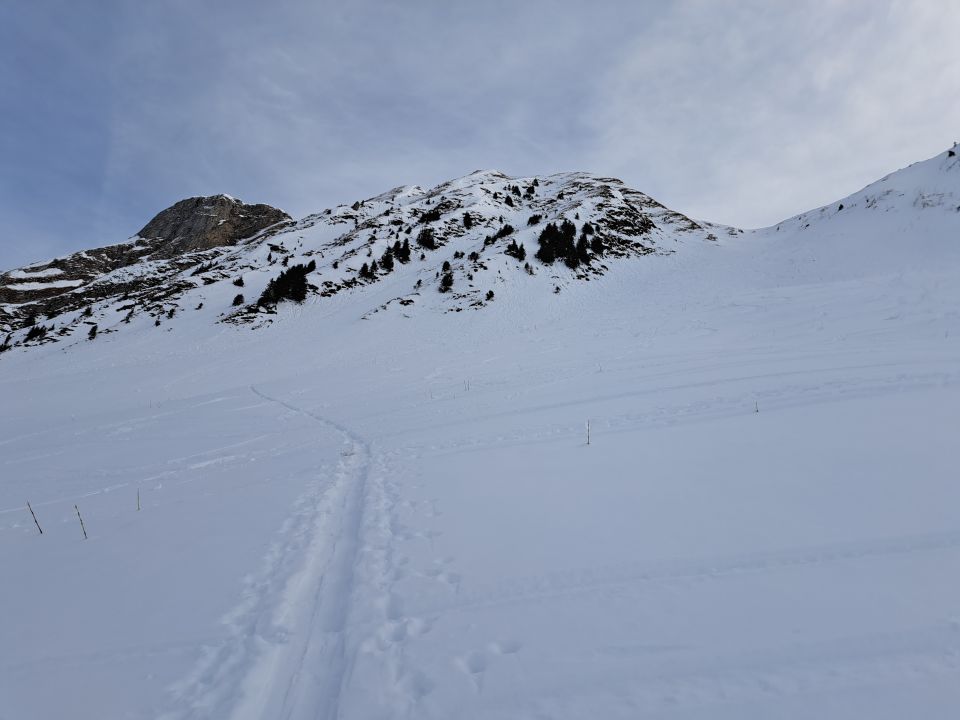 Auch der Gantrisch hat überall genügend Schnee im Aufstieg bis Skidepot.