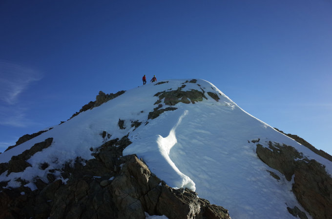 Am Vortag anspruchsvolle und lohnende Traversierung des Kleinen Schreckhorns von der Glecksteinhütte (siehe Eintrag).