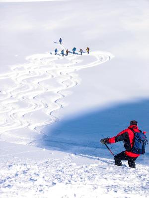 Mit Liften ab St. Luc bis 10 Min. unter Gipfel. Abfahrt bis Agarn, 2400 Meter.