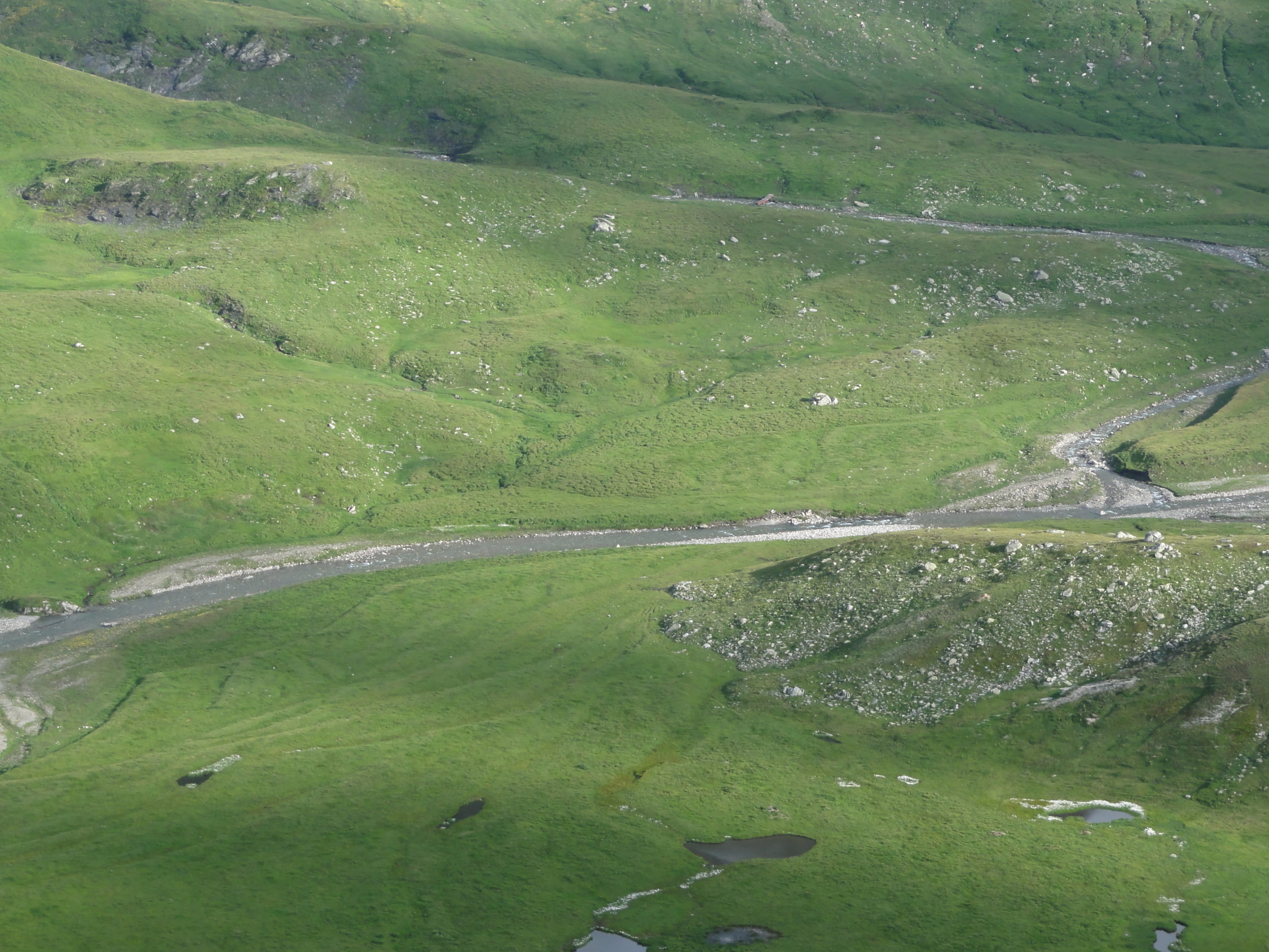 Variante um die Greina zu verlassen, die lohnenswert erscheint: Gegen Diesrut Pass und zur Fuorcla Cotschna hoch. Unbedingt den Tgietschen erklimmen. Über anstrengendes Wiesen-Busch-Lochgelände auf die Alp Ramosa und schliesslich runter nach Puzzatsch. Weiter via Rufbus nach Vrin.