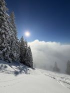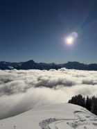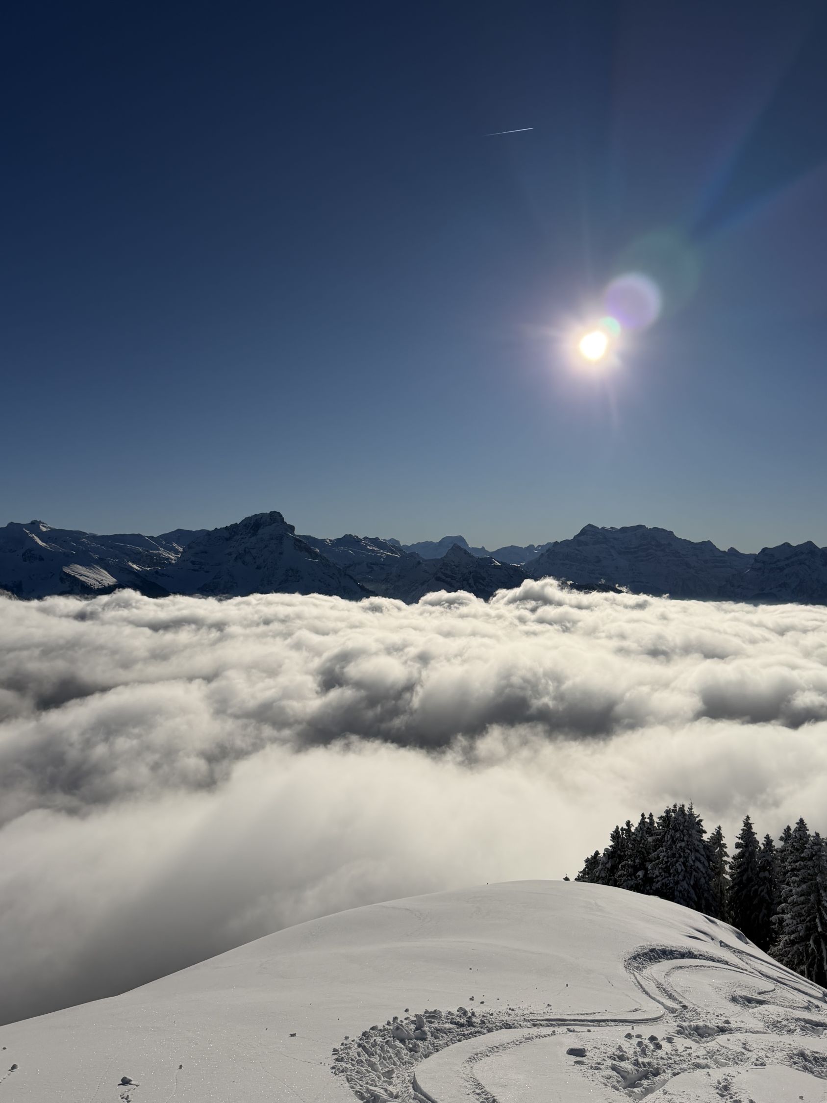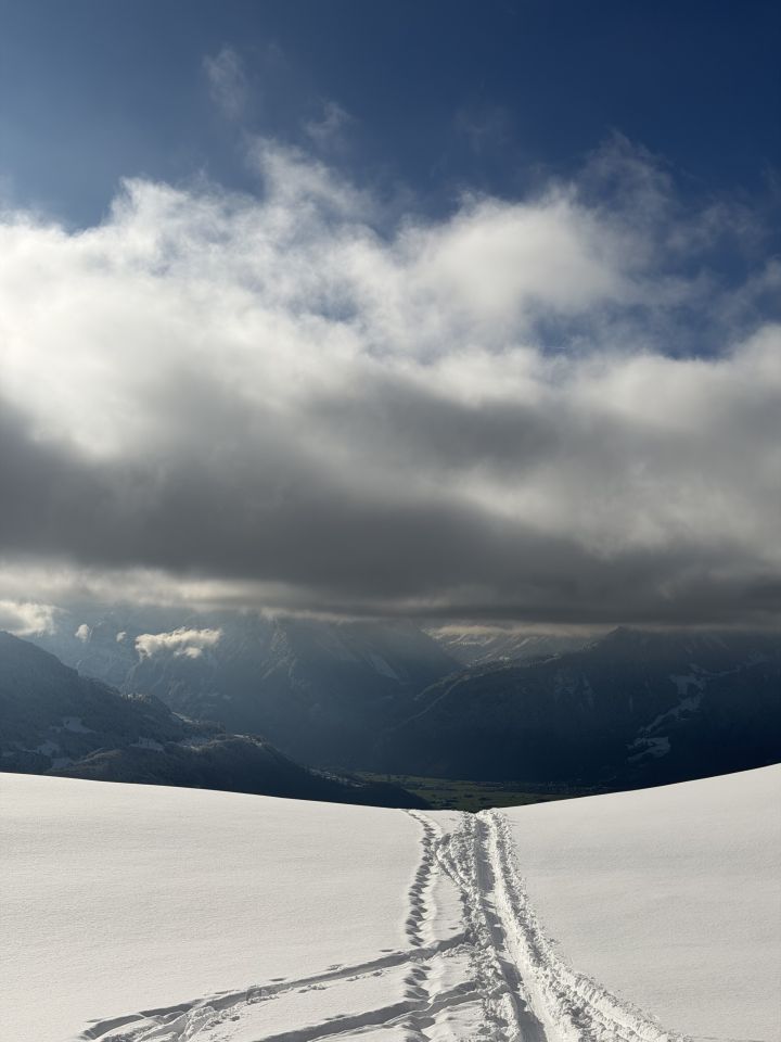 Schnee schwerer wie erhofft. War wohl einst Pulver….aber grade noch gut.