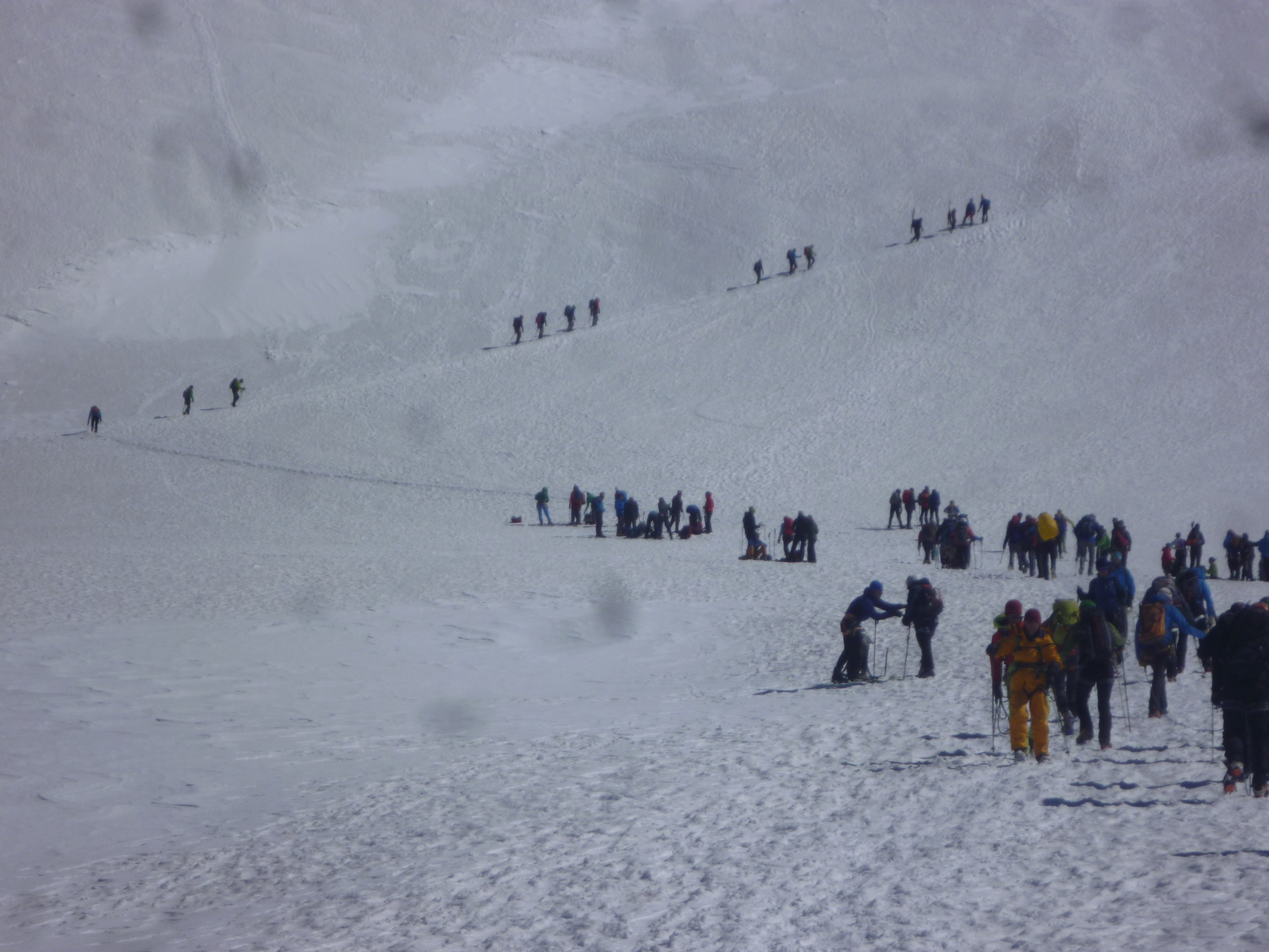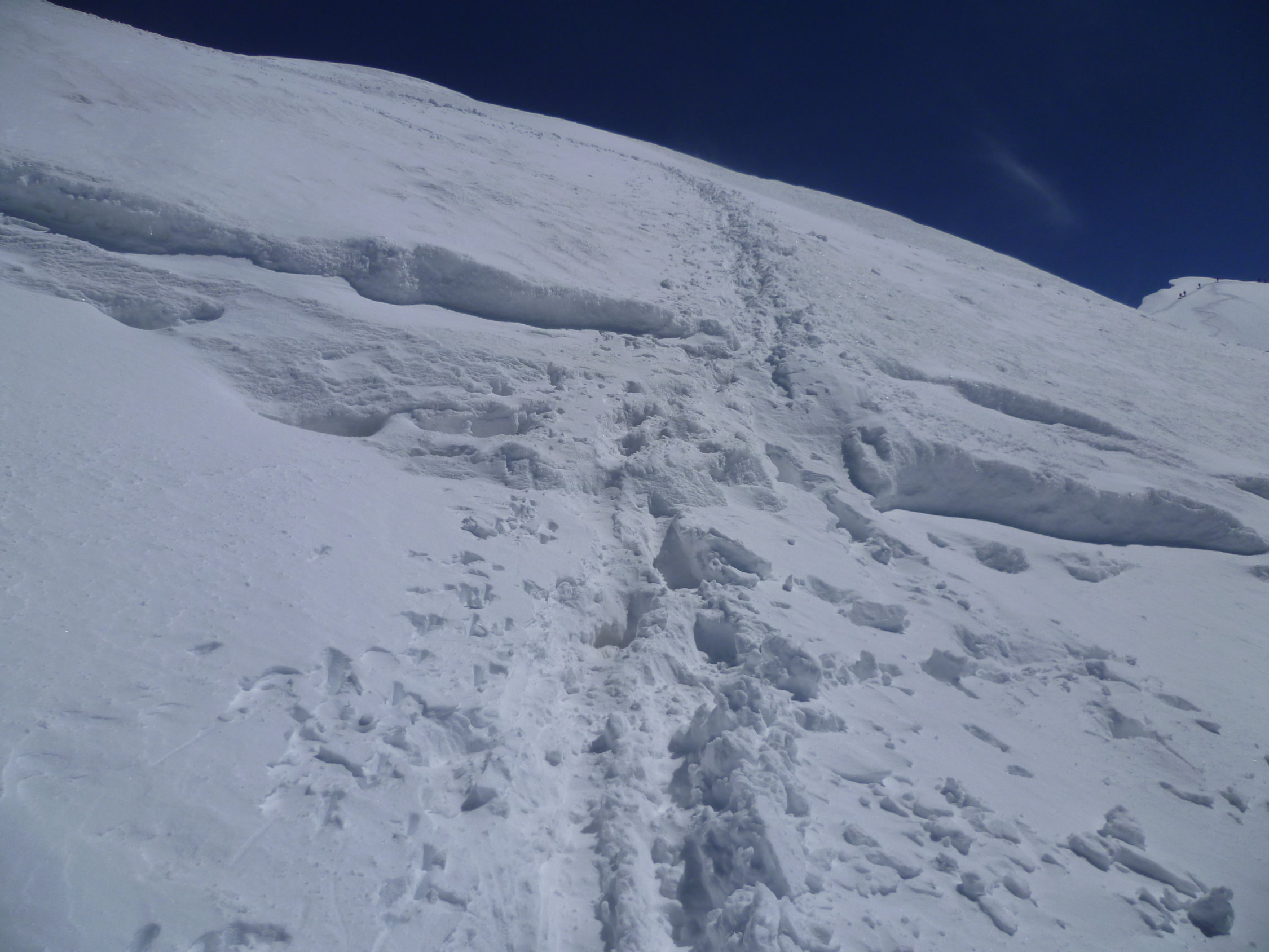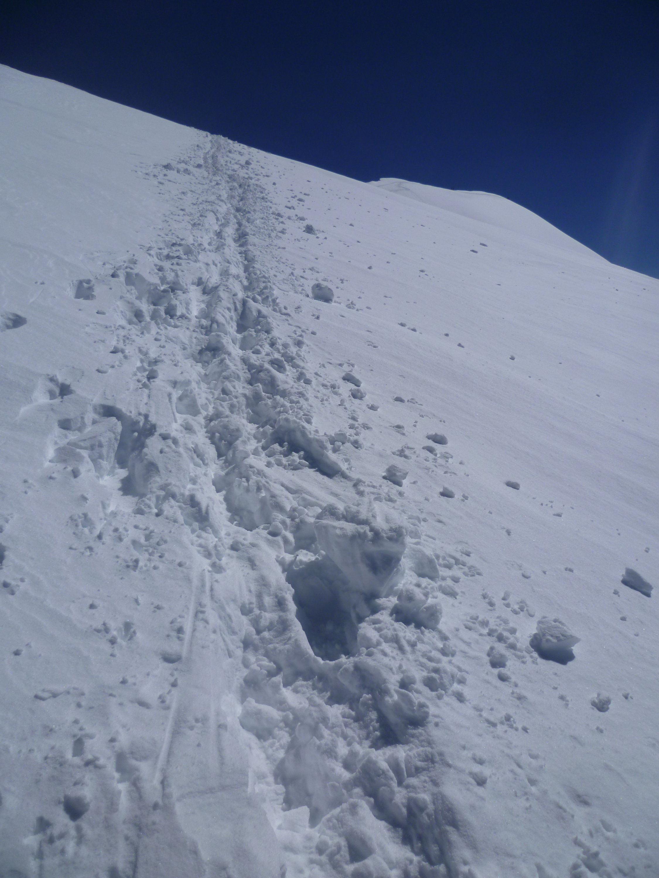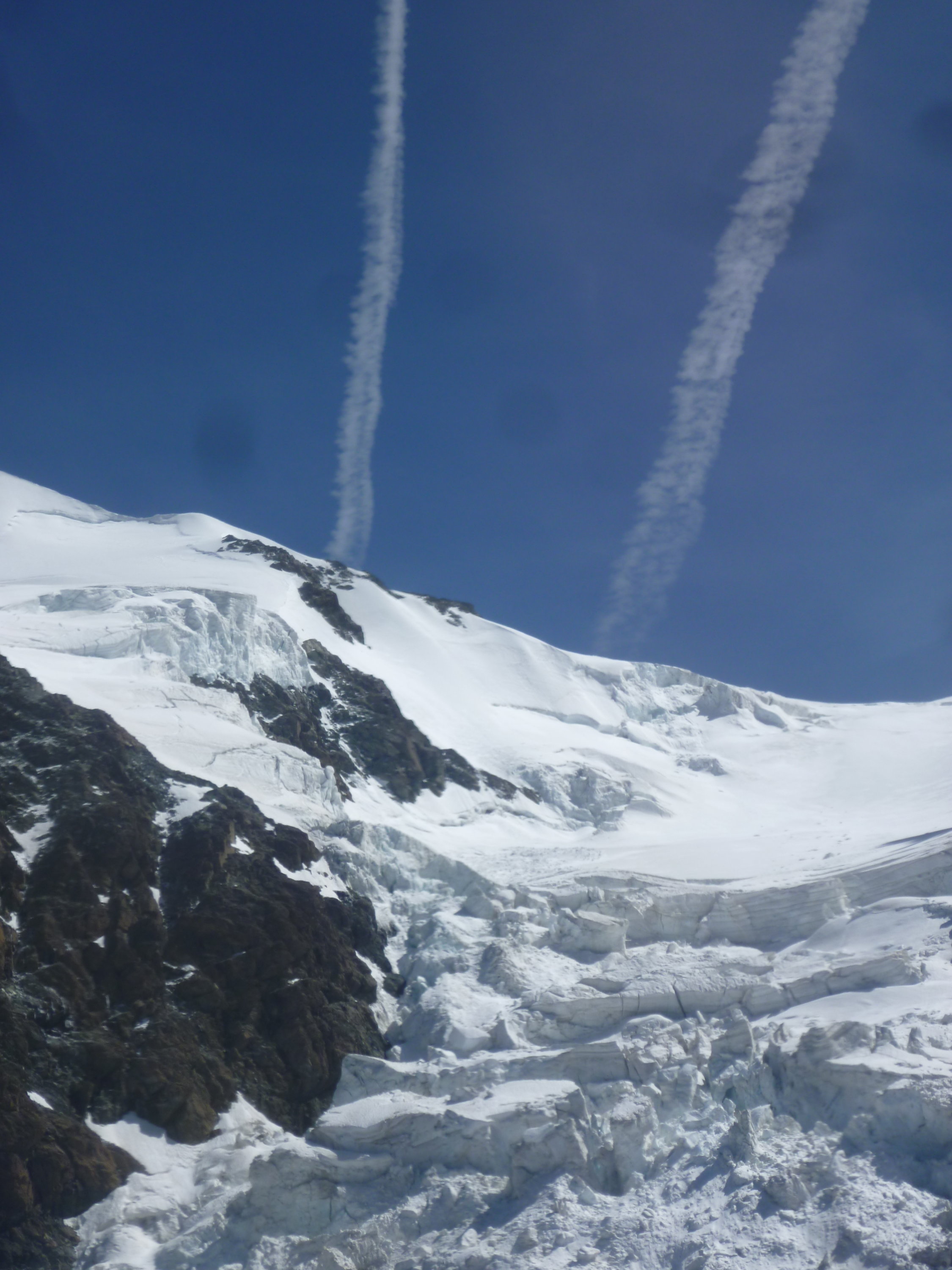 Gute Spur trotz frischem Pulverschnee. Starker und böhiger Wind. Einige waren am Breithorn Westgipfel auch mit Ski unterwegs.