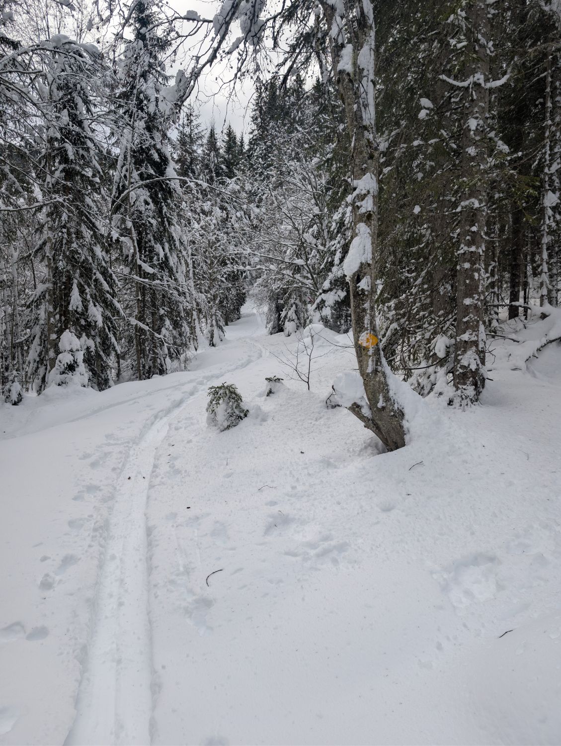 50 cm leichter Pulverschnee im oberen Bereich, an den Schattenhängen (Nordost).