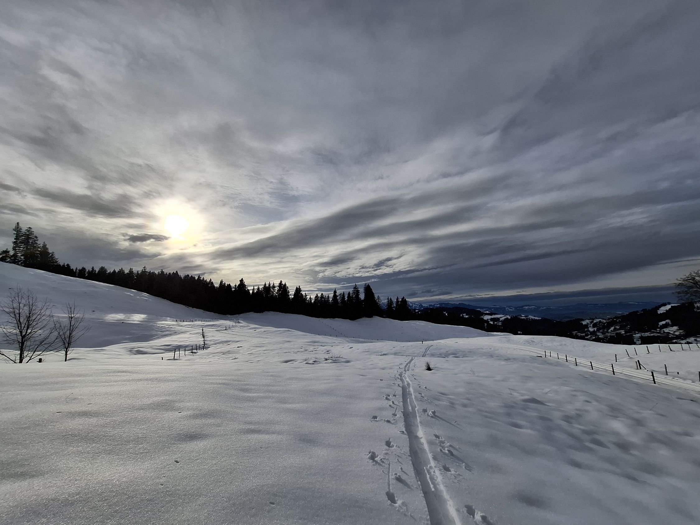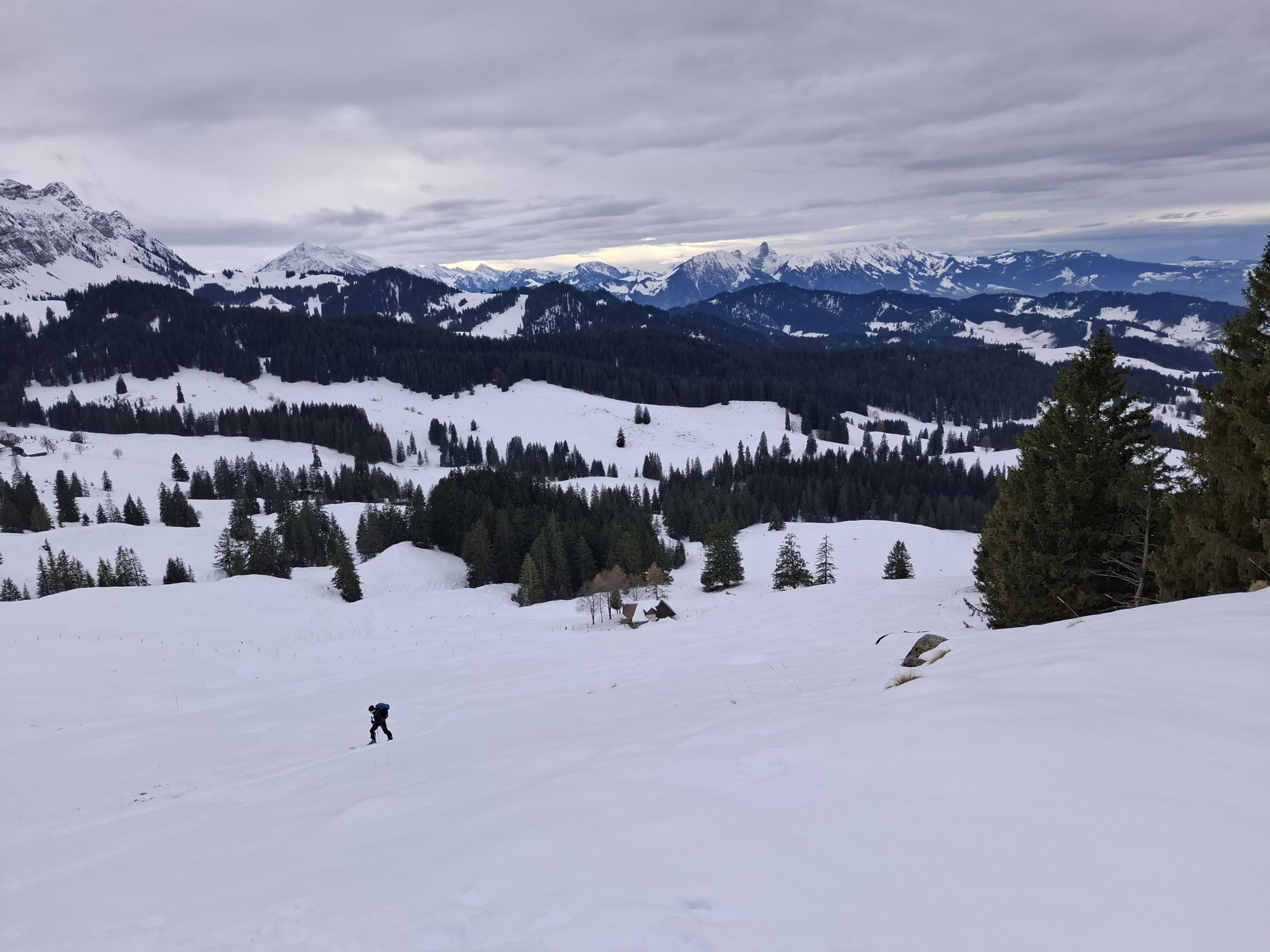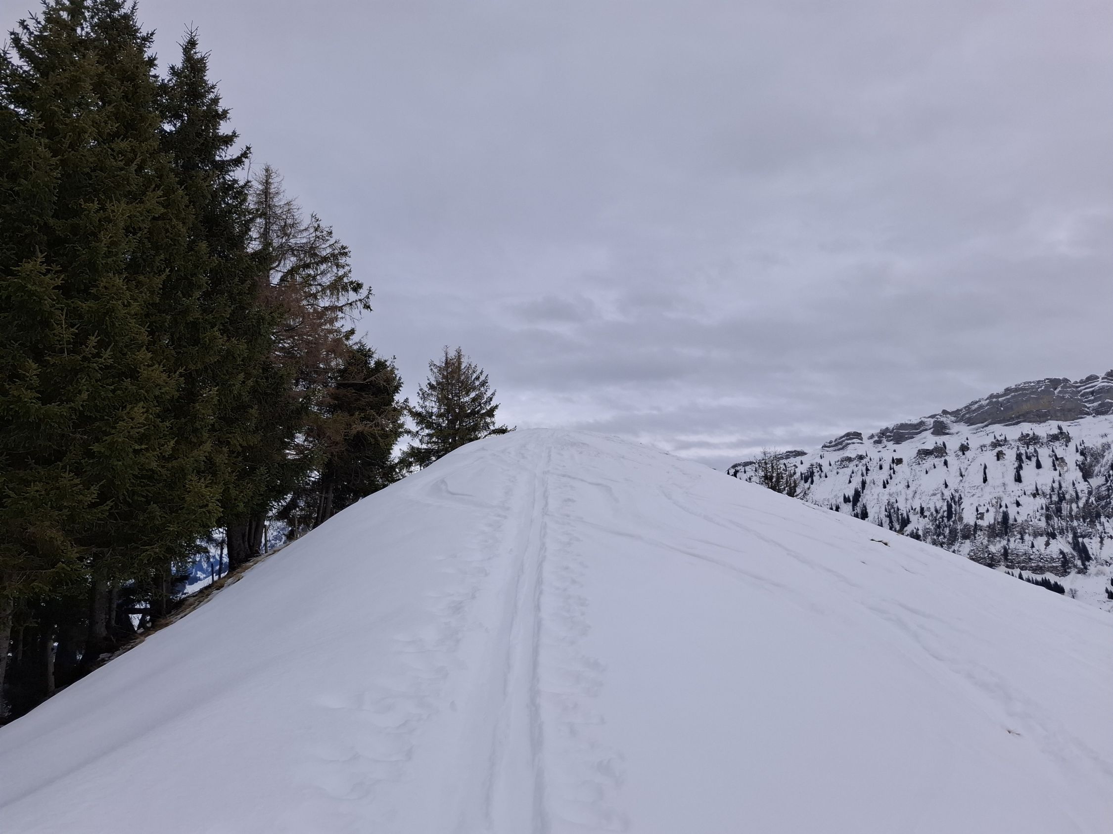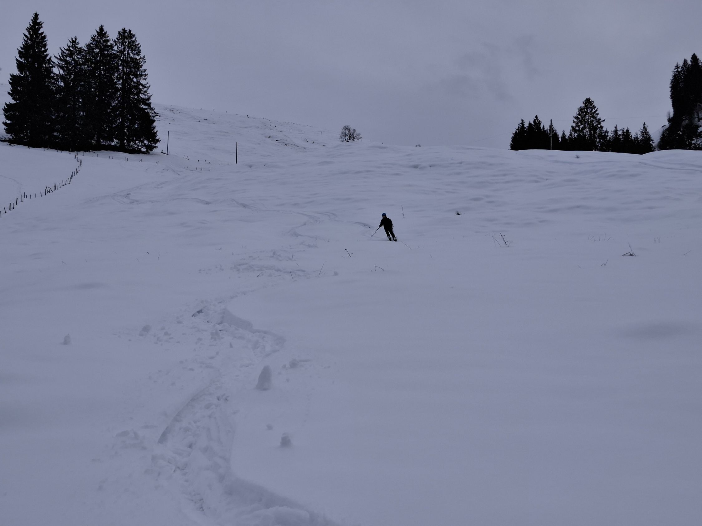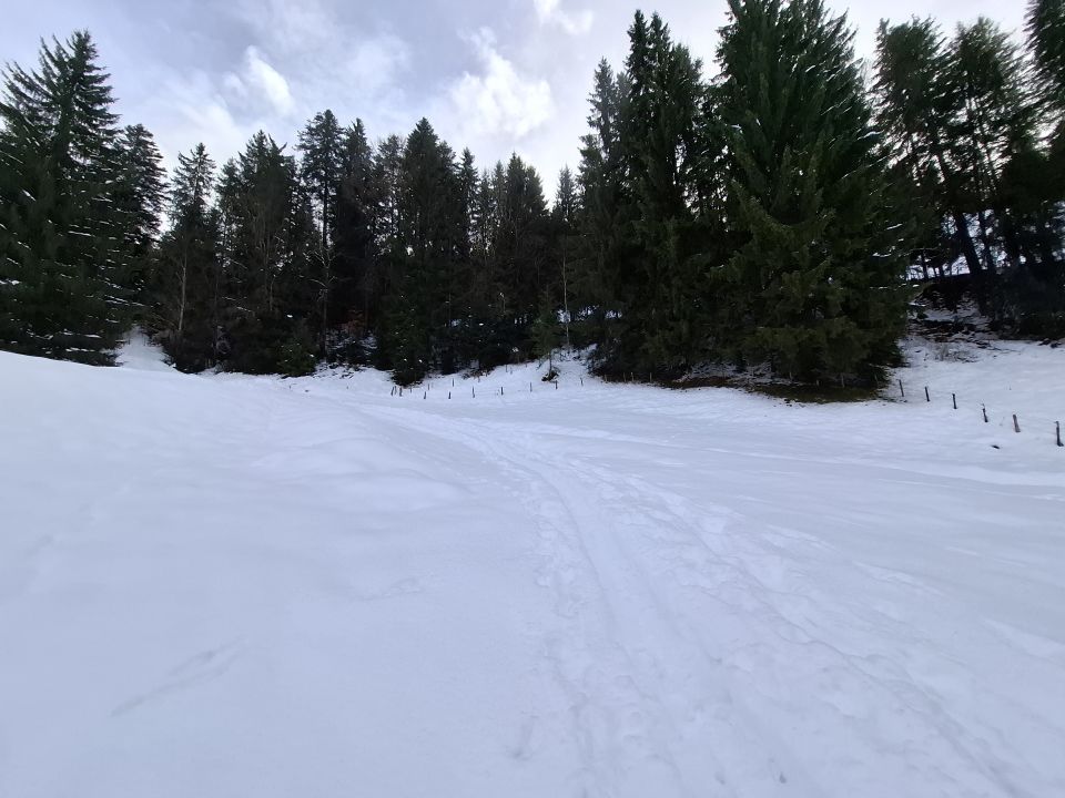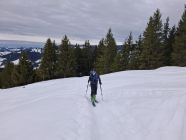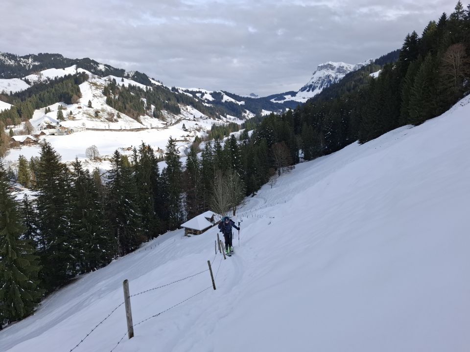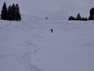 Wir sind die Abfahrtsroute über Fiedersegg hinter Zugschwand nach Schattenseite. Heute waren wir die einzigen am Stouffe. Aber an den Spuren war zuvor einiges los.