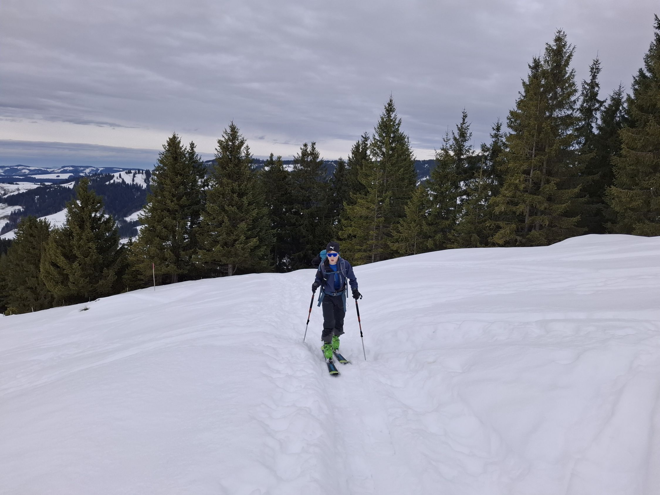 Der ist aber recht nass. Aber erstaunlich gut fahrbar. An den unteren Steilen Stellen knapp Schnee. Da aber meist Wiesengelände nicht so tragisch.