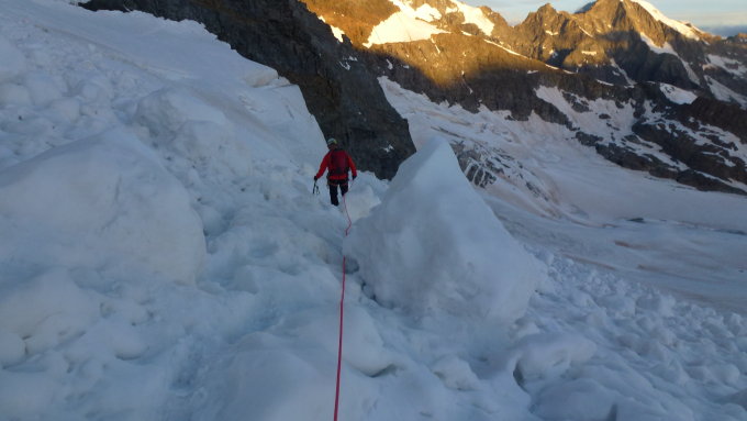 Durchwegs gute Verhältnisse. Übergang vom Gletscher in die Wand wird langsam schwierig
