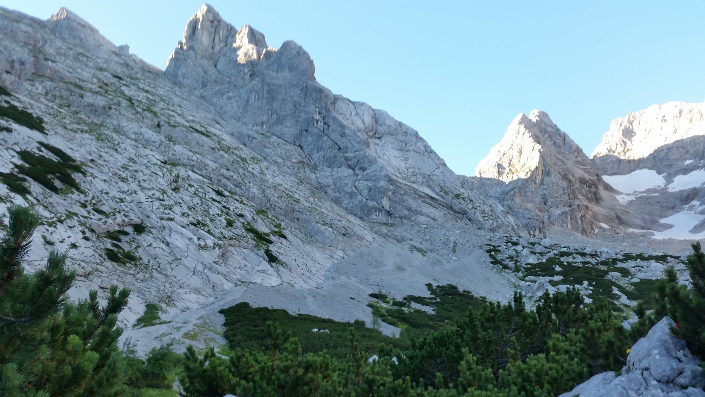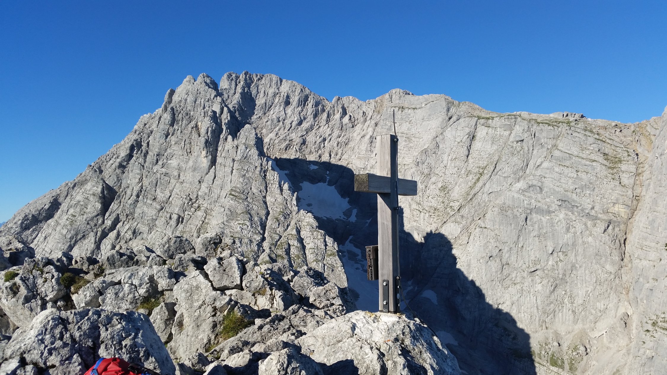 Alles trocken. Traumhaftes Wetter. Ich war um ca. 8:30 Uhr alleine am Gipfel. Im Abstieg dann sehr viele Leute unterwegs zur Blaueishütte.
