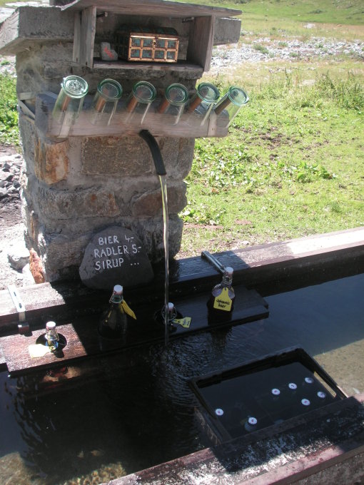 Wer zu Fuss zur Alp Sardasca geht, trifft immer wieder auf Brunnen (Trinkwasser).