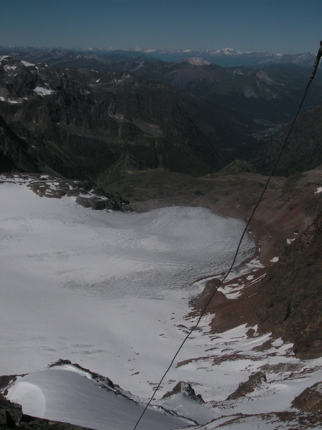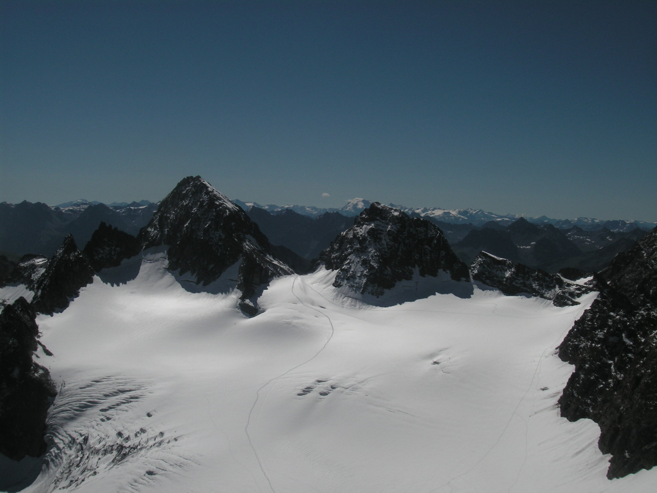 Gletscher blank bis 2700m. Im Schutthang zur nördl. Egghornlücke hatte es nur noch sehr wenige Restschneefelder die den Aufstieg erleichtern.