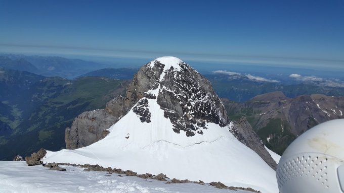 Wir sind dann weiter aufs Mittelhorn und die steile Rinne (bis 50 Grad) hinunter auf den Grindelwaldgletscher (viele Spalten).