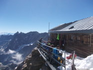 Da wir zuviel Zeit brauchten, mussten wir die Solvayhütte als Notunterkunft benutzen. Mit uns verblieben dort noch zwei Kanadier. Viel mehr Personen würde die kleine Hütte auch nicht vertragen, schon allein aufgrund der dort vorhandenen Anzahl an Decken.
