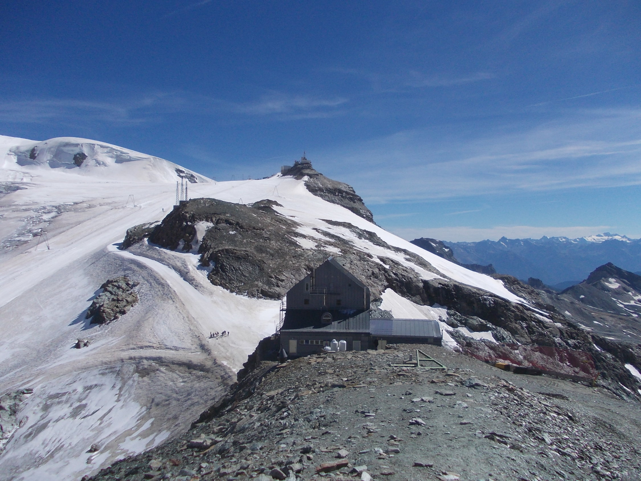 Wir nutzten den Samstag für die Gletscherwanderung von der Station Trockener Steg via Theodulpass hinüber zur italienischen Seite. Da das Rifugio Oriondé ausgebucht war, wichen wir auf das Hotel Stambecco aus, welches sich im Gebäude der Bergstation Plan Maison (2543 m) befindet.