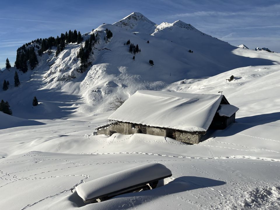 Gute Verhältnisse, durchgehend eingeschneit ab etwa 1100 m. Im unteren Teil teilweise tragende Kruste, weiter oben meist schwerer Pulverschnee. An unbesonnten Hängen noch sehr schöne Verhältnisse.