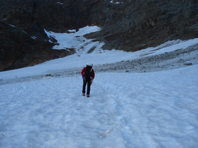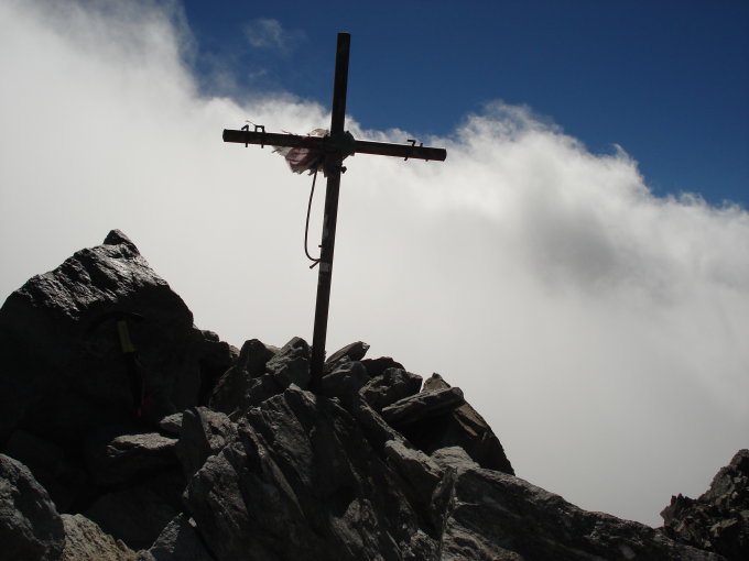 Start der Tour am 8.30 Uhr bei Hohsaas, weiter über Felsen und Steine zum Laggingletscher, durch den Schneefreien SW Grat , zuletzt durch die Gipfelflanke die einige Meter eher schwierg war, am Gipfel leichter Nordwind.