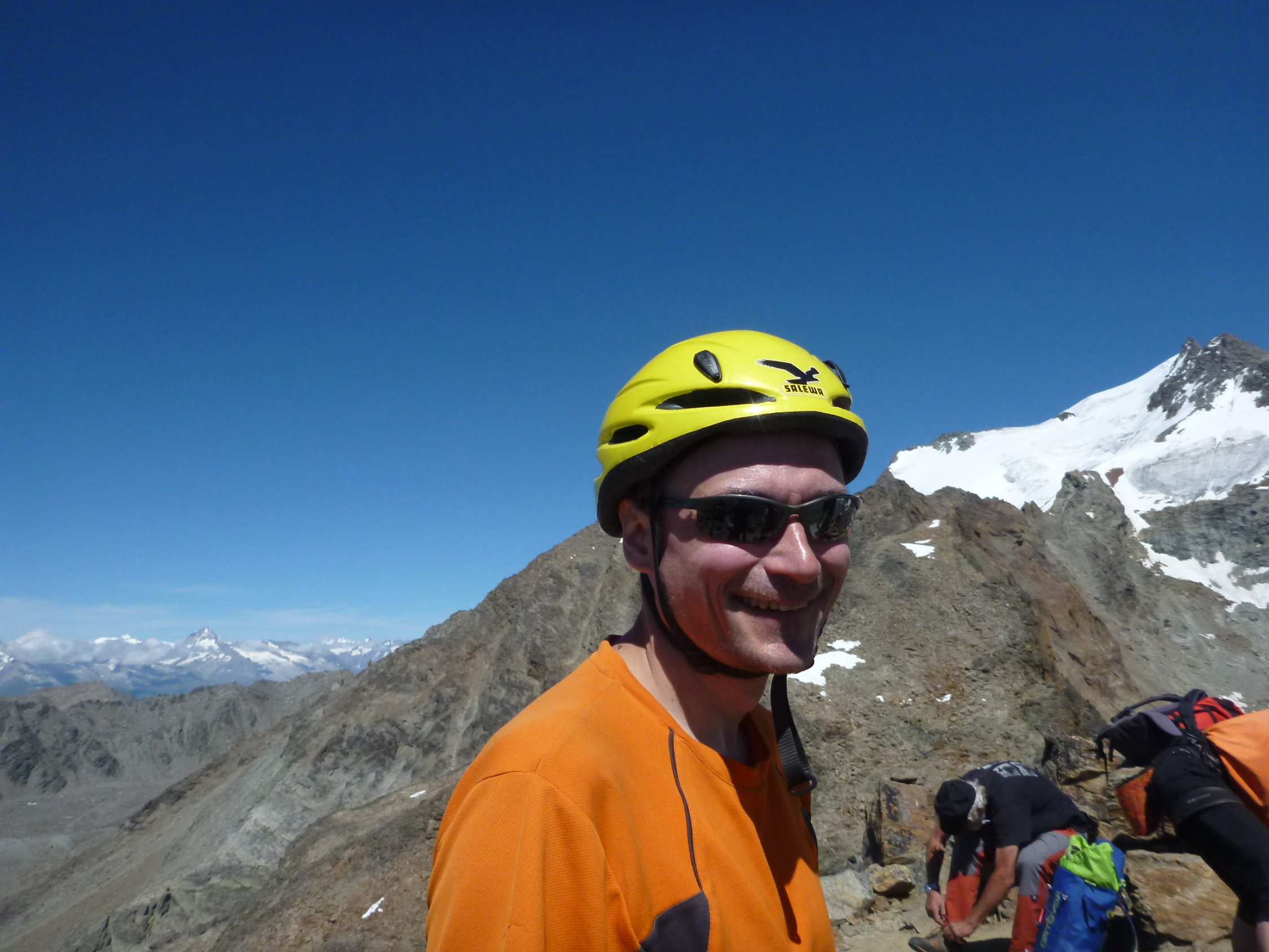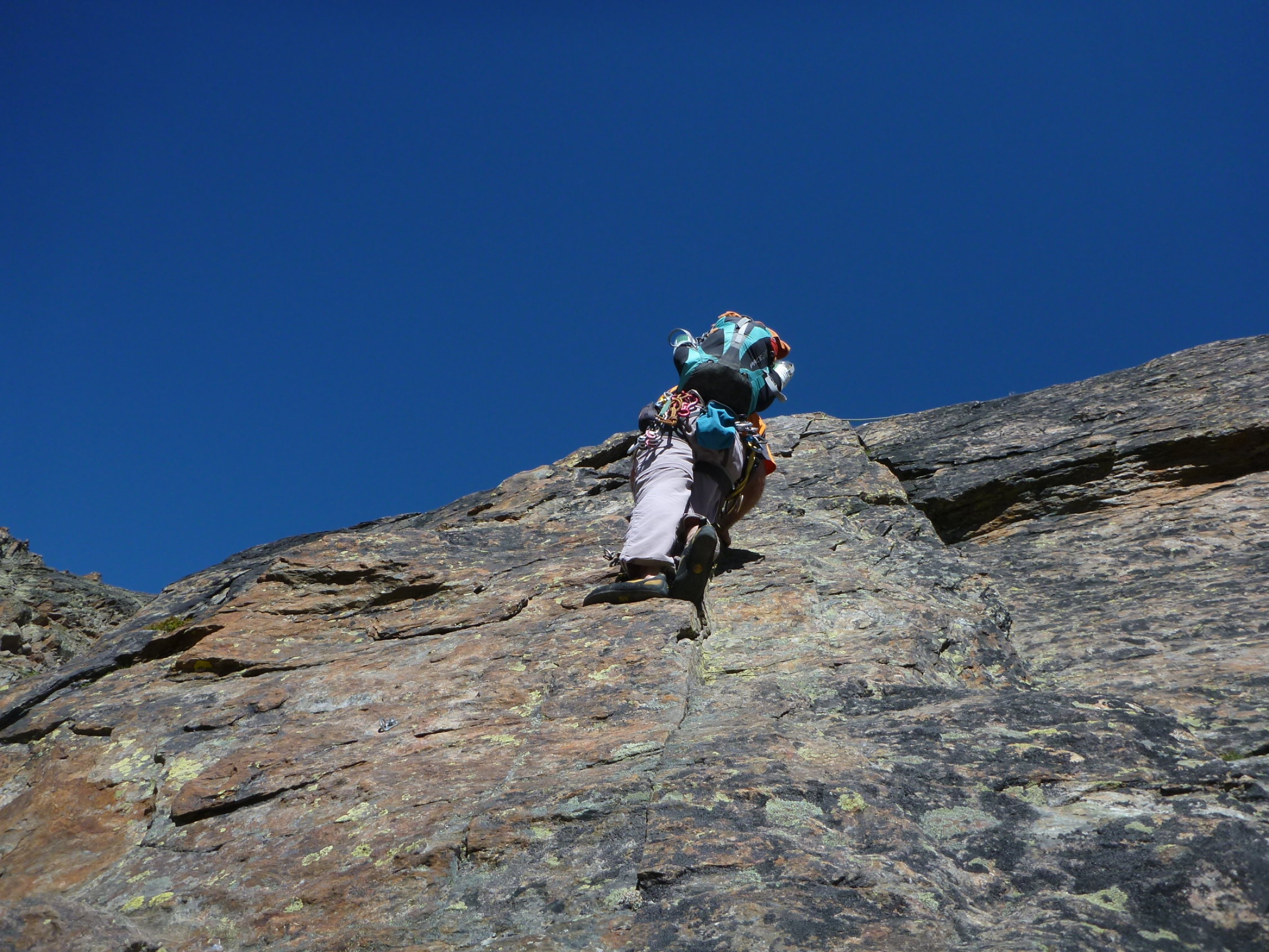 Es waren mehrere Seilschaften unterwegs. Und man ist entweder am Klettern - oder am Sichern. Und beim Sichern steht oder sitzt man in der Sonne zusammen mit der / dem Sichernden der anderen Seilschaft. So habe ich Franziska und Arnold getroffen....Ich wünsche weiterhin schöne Touren