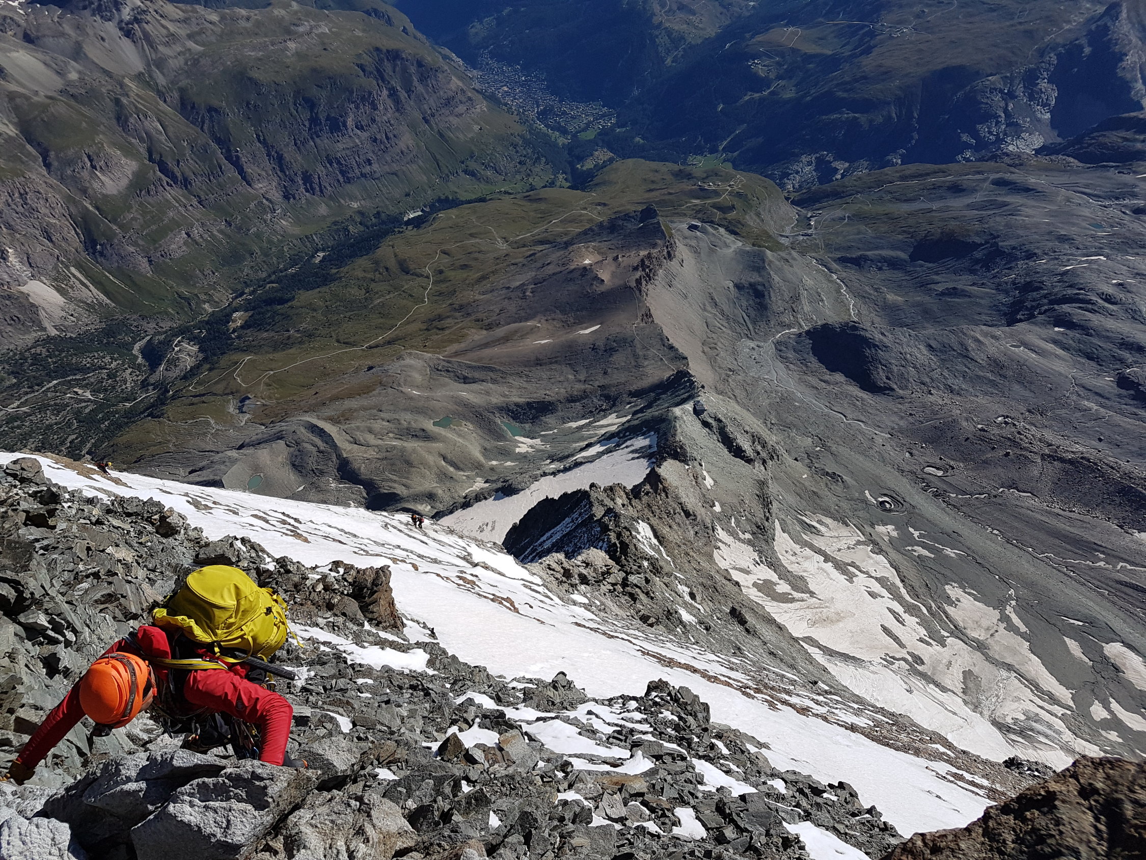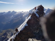 Top Verhältnisse - Lionsgrat ist so gut wie schneefrei, wir haben die Steigeisen erst am Gipfel gebraucht und dann bis ca zur Solvay runter. Fixseile sind alle in gutem Zustand. Das Rif Carrel war extrem überfüllt - am Besten früh starten um sich dort einen Platz zu sichern und nicht auf dem Boden / der Terrasse schlafen zu müssen!