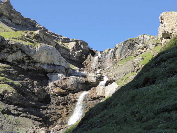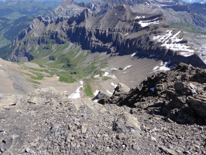 Auf der Nordseite, unterhalb des Oldensattels, hat es einige Restschneefelder, die man stellenweise überqueren muss. Falls diese gefroren sind, geht das nicht ohne Steigeisen oder Schneeschuhe.