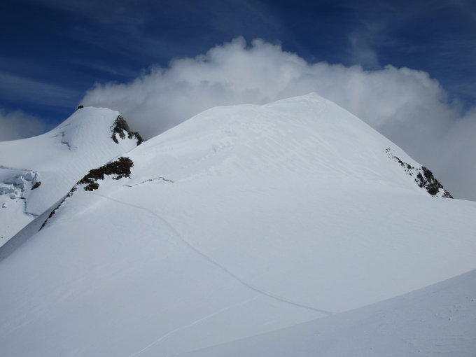 Ludwigshöhe (4341 m, der südlichste 4000er der Schweiz), Corno Nero (4321 m) und Balmenhorn (4167 m) am selben Tag bestiegen aber die Parrotspitze (4432 m) gelassen. Längere Firngratüberschreitung, alleine, zu relativ später Stunde und aufkommenden Wolken war nach eigener Beurteilung nicht zumutbar.