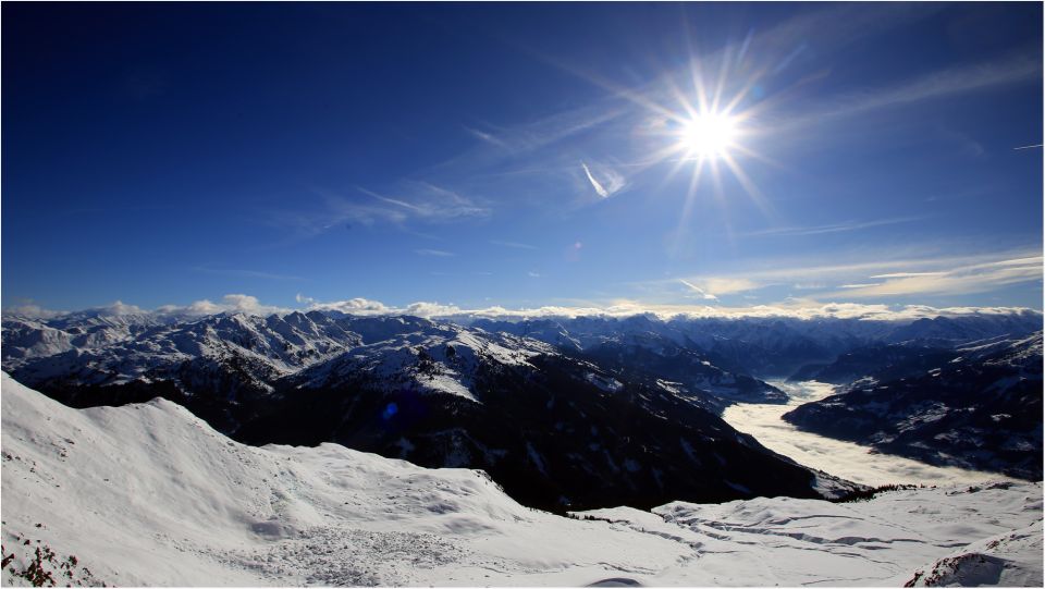 Blick in die Runde: Wenig Schnee so weit das Auge reicht, die Pisten sind aktuell noch nicht gebügelt, auch dort scheint es lt. Info von anderen Tourengehern nicht gut zu gehen.