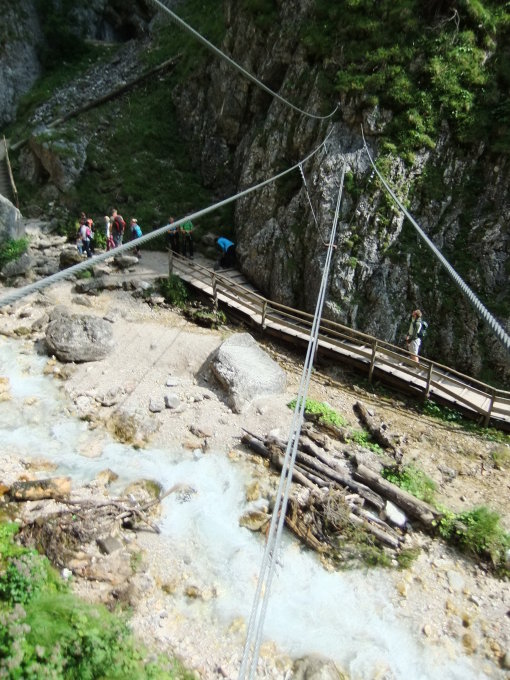 Tourenbeginn um 11:00 Uhr im Anschluß nach dem Siega-Klettersteig. Es wurde ein sonniger Tag, der viele Besucher in die Klamm lockte.