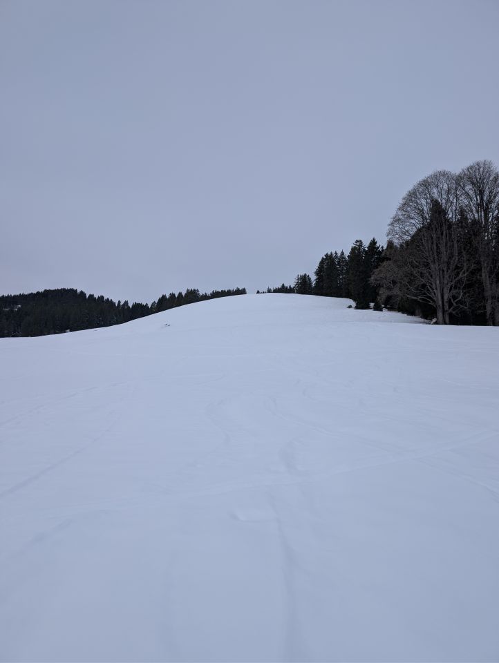 Meistens harter Schnee mit stellenweise 5cm Pullverschnee darauf aber nie brüchig oder eisig. Wir waren auf p.1871 südlich vom Planihubel. Im Schlusshang zwischen p.1748 und p.1871 gut 10cm Pulverschnee.