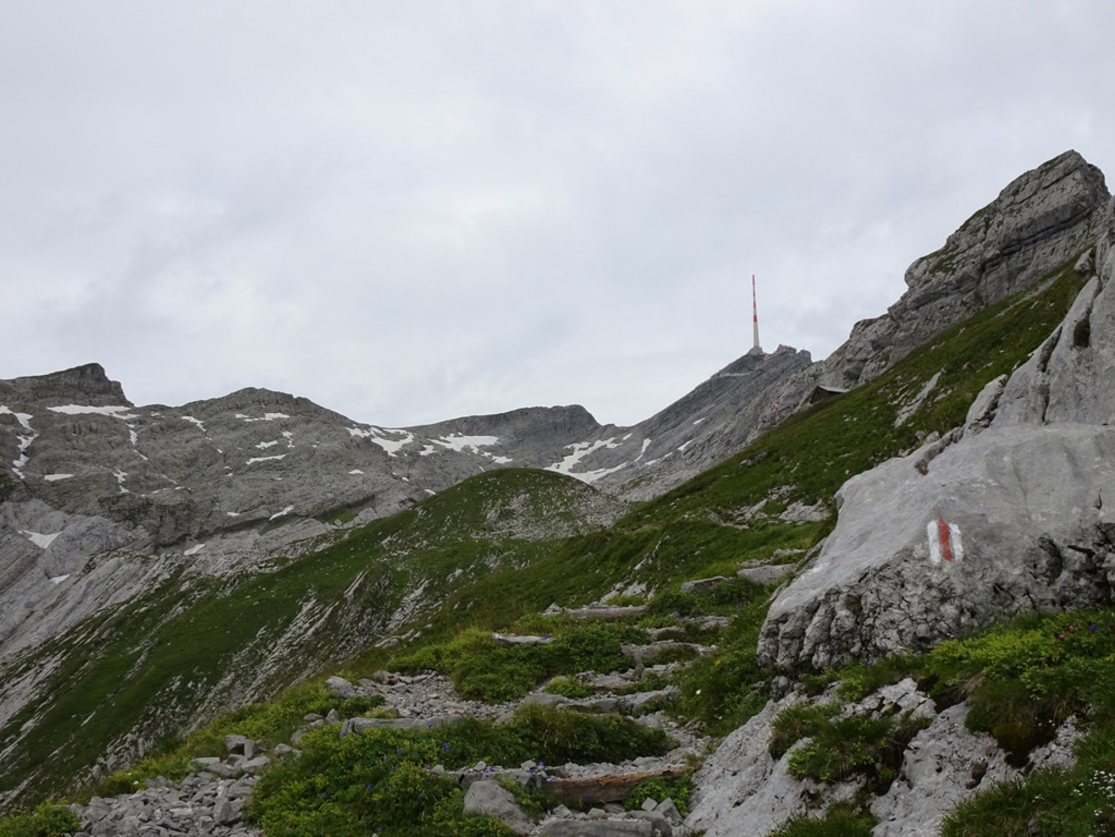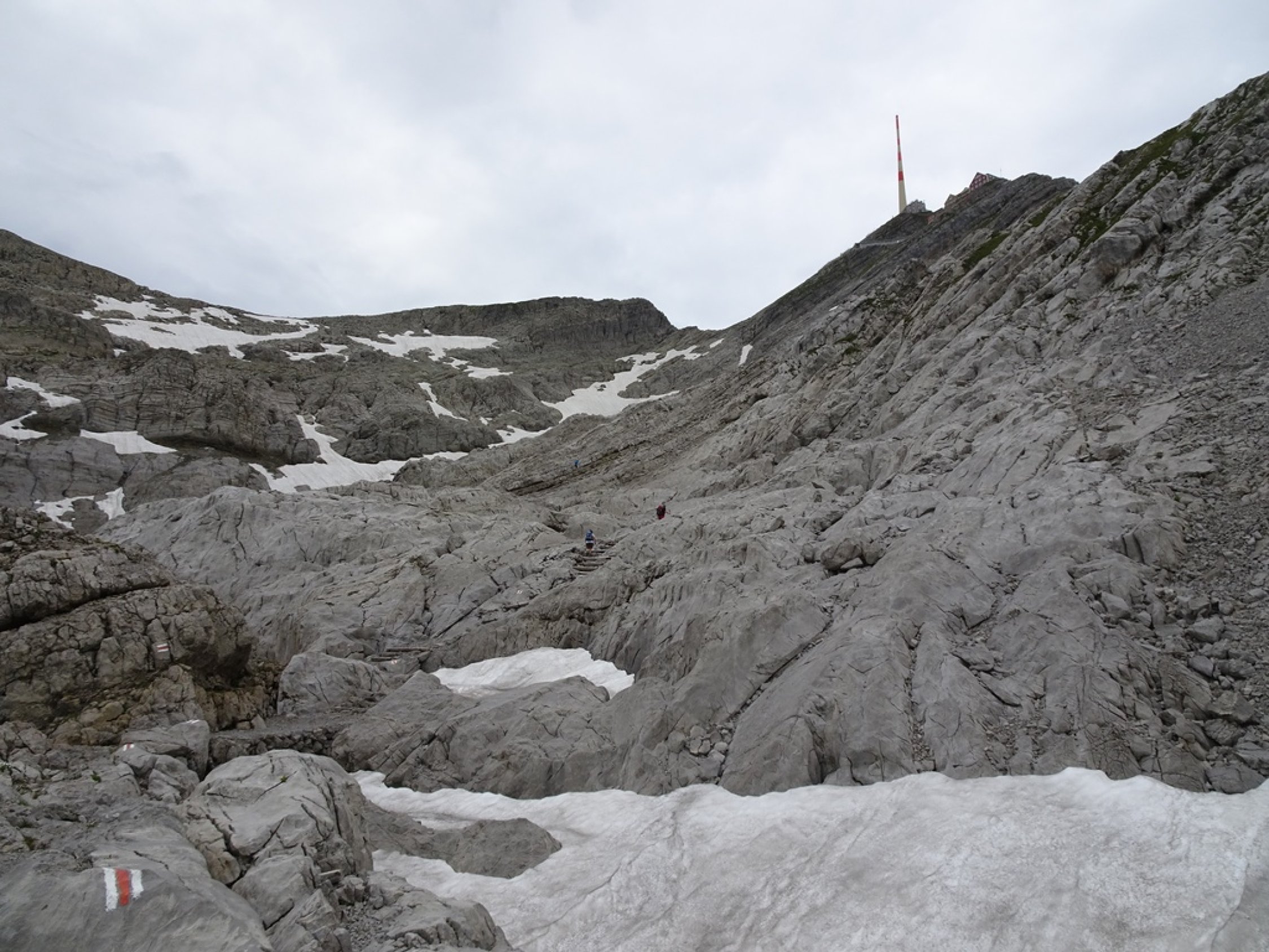 Wege in perfektem Zustand und gut zu begehen. Ganzer Weg schneefrei, bis auf ca. 20 Meter unter dem Berggasthaus Alter Säntis, wo noch ein Schneefeld gequert werden muss.