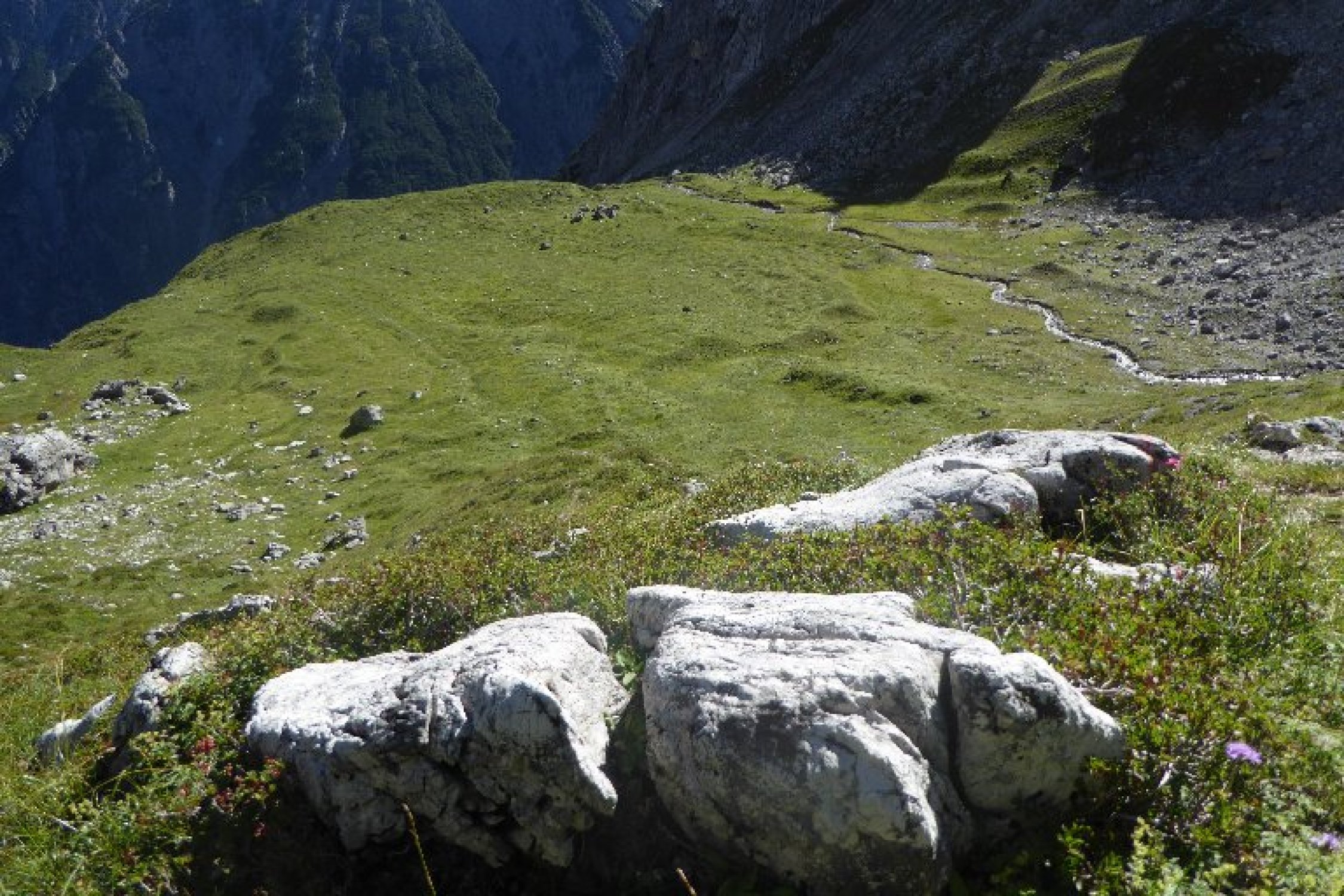 Die Runde übers Landschaftskar ist zwar etwas aufwendiger. Aber eben dieses Kar verdient seinen Namen in jeder Hinsicht. War bis zum Abstieg über Roßkarseeweg alleine. Gipfelbuchbehältnis ist total im Eimer, GB hab ich keines gesehen.