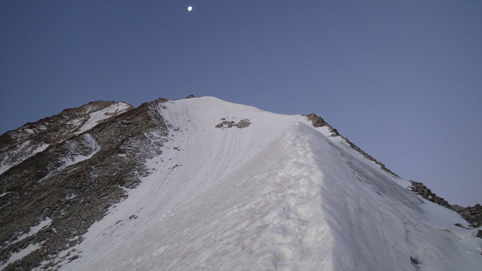 Gute Verhältnisse am Nordgrat. Etwas eisig am Zustieg zu den Nordgratfelsen. Im oberen Teil zeitweise etwas rechts des eigentlichen Firngrads (Mulde) aufgestiegen. Fels ist trocken.