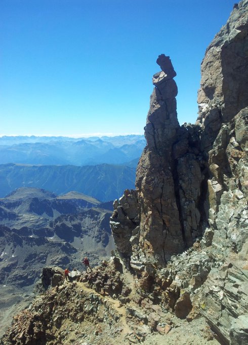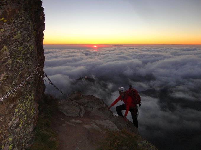 Perfektes Wetter, sonnig, warm und am Gipfel etwas windig. Prächtige Fernsicht vom Mt. Blanc und Monte Rosa im Norden bis zu den Seealpen im Süden. Frühstück für Monviso aktuell um 4.30 h, da sich oftmals bereits am späten Vormittag Nebel oder Quellwolken bilden.