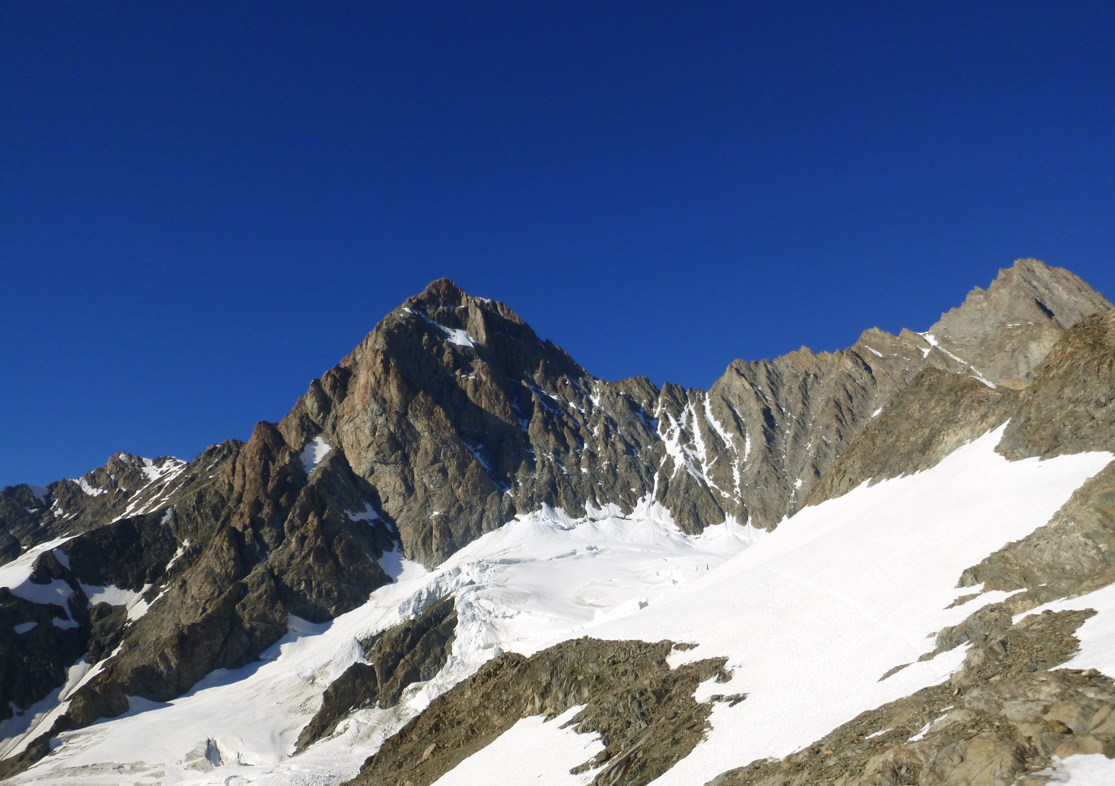 Verhältnisse sehr gut, Bergschrund noch gut gangbar, Firnfeld nicht mehr wirklich. Danach Fels komplett trocken. Überschreitung sah super aus, Andersongrat wurde ebenfalls gemacht.