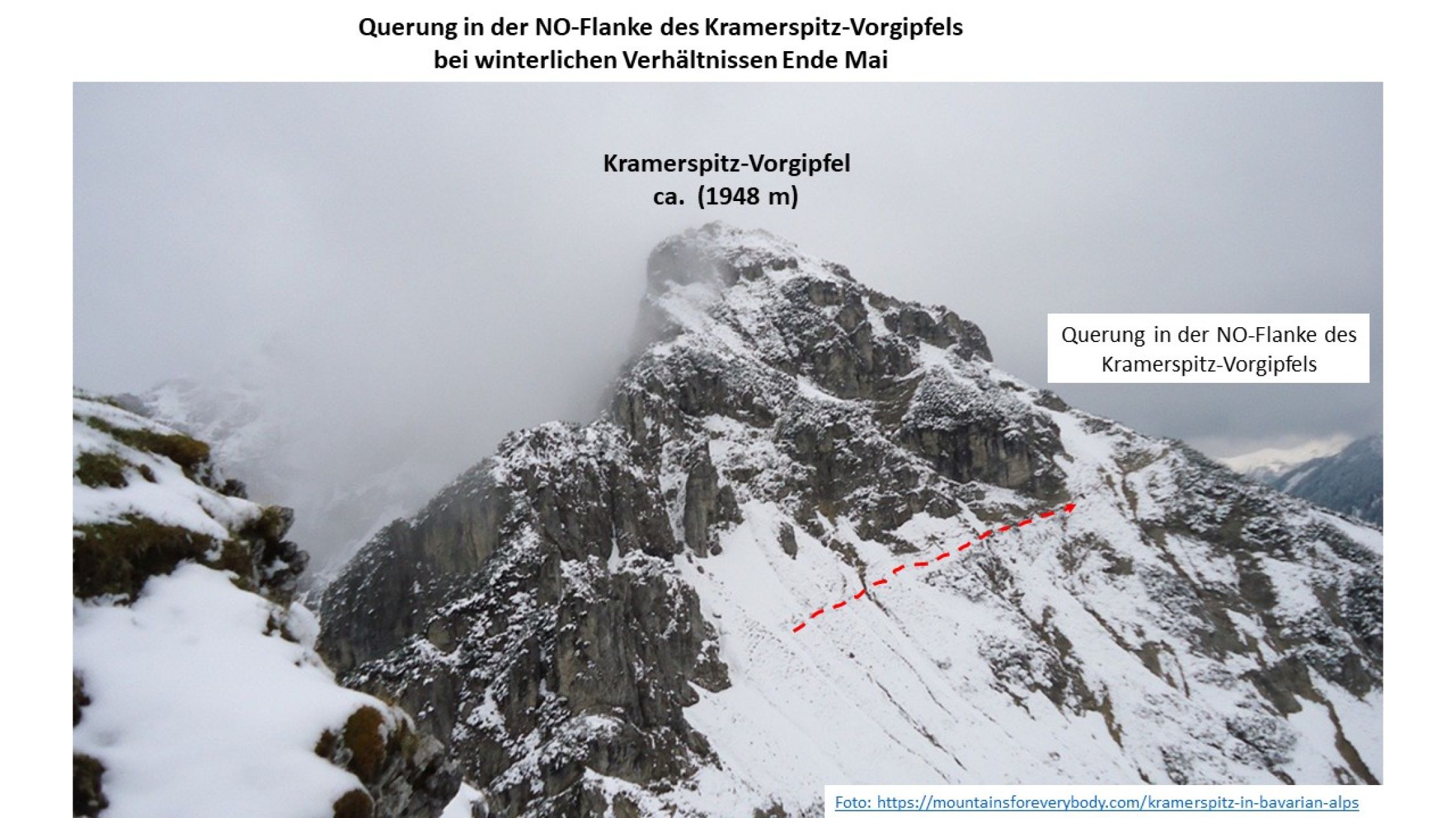 Die Verhältnisse im Kramersteig im Bereich der o. g. Querung in der N-Flanke werden sich in den nächsten Tagen nicht relevant ändern.