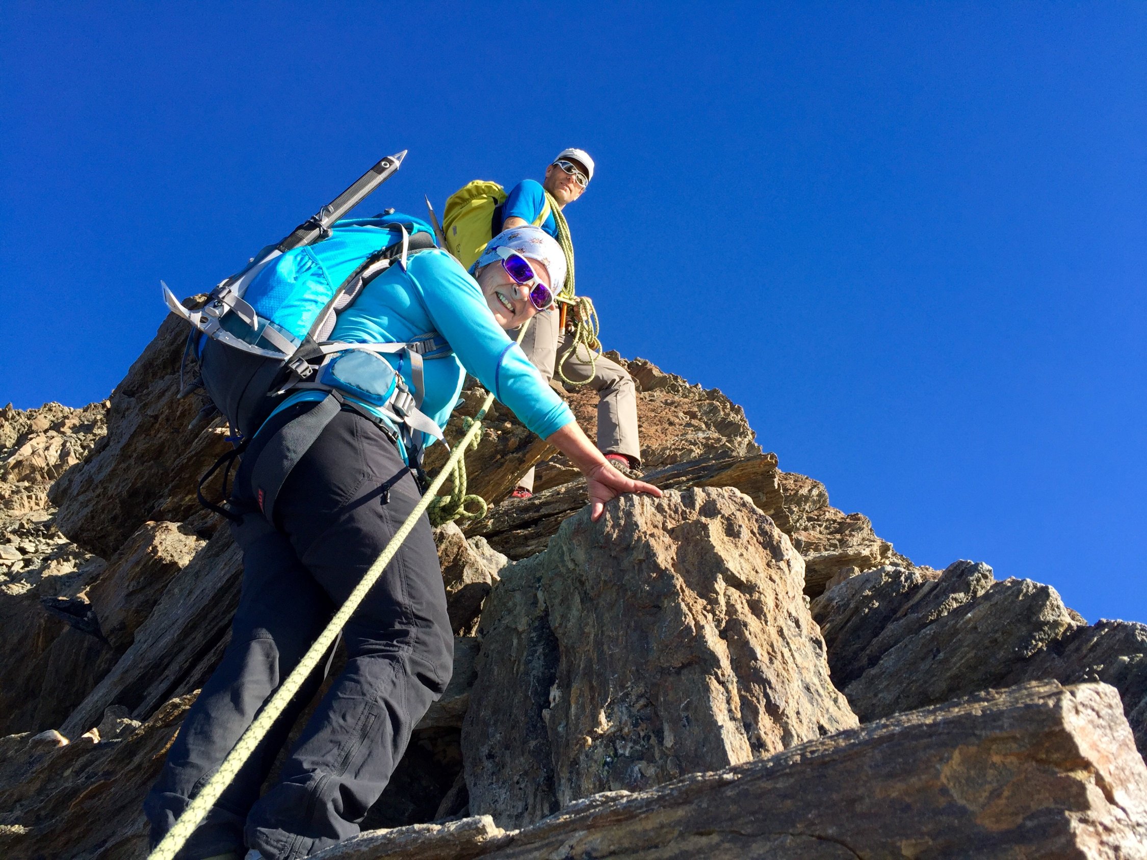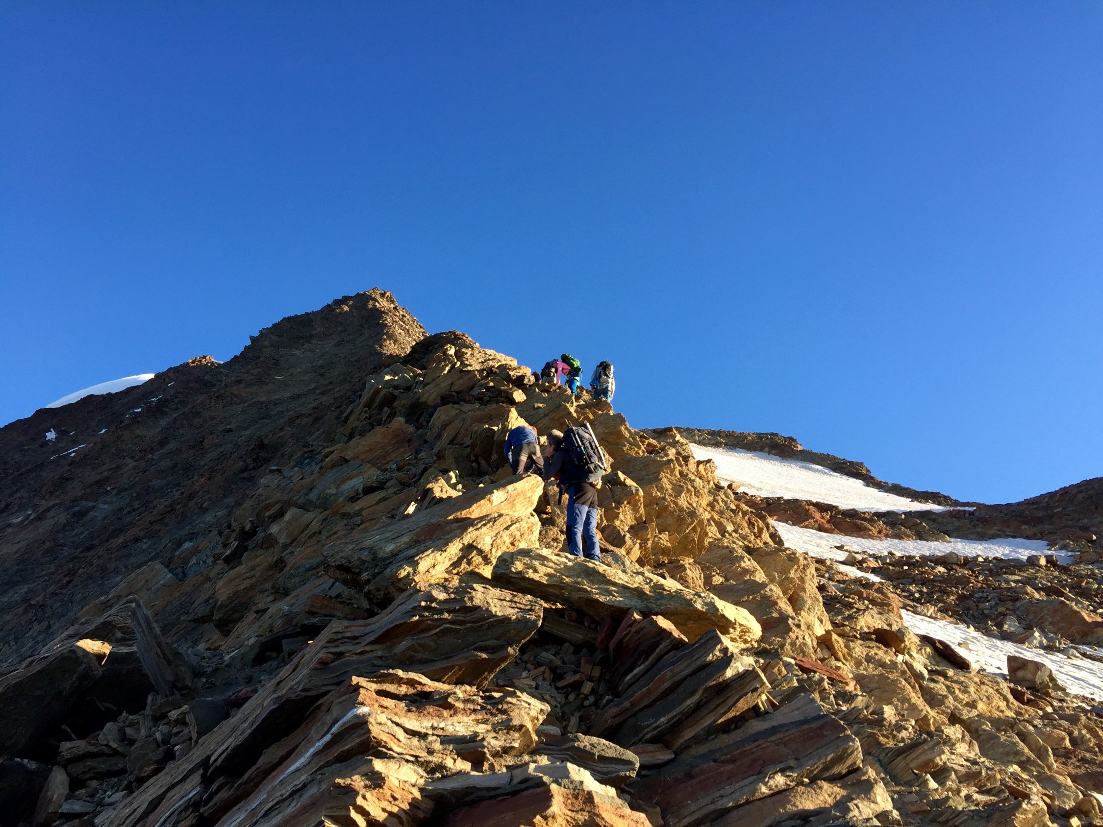 Einfach Top, Fels trocken, Gletscherabstieg noch ziemlich hart.
