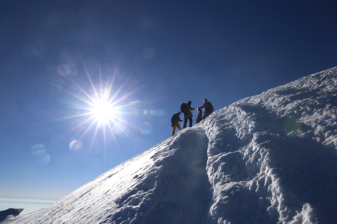 Auf dem Normalweg ist gut auf den serac zu achten, täglich frische Abbrüche, also