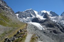 Aufstieg von der Tschiervahütte über neuen Zustieg zum Firnfeld, was zur Fuorcla Prievlusa führt (oberhalb des alten Zustiegs, direkt ab der Hütte).