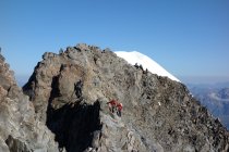 Objektiv sichere Verhältnisse, kein Steinschlag, daher sind alle Seilschaften über das Firnfeld aufgestiegen.