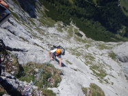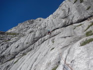 Die letzten 3 SL nach Schacht nochmal sehr schön, ebenso mehrere SL vor dem Schacht. Insgesamt sollte man im unteren 6. Grad sicher unterwegs sein, um Spaß zu haben in der Route, gerade auch in den frei zu kletterenden Stellen im Schacht.
