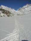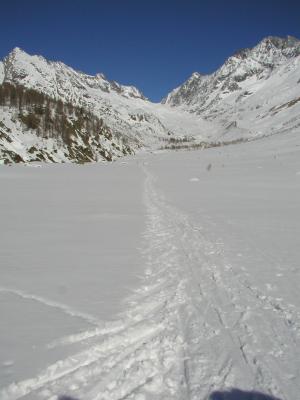 Abfahrt Lötschenlücke - Blatten: 10cm Schwerer Pulver der sich rasch in Nässeren Schnee umwandelt.