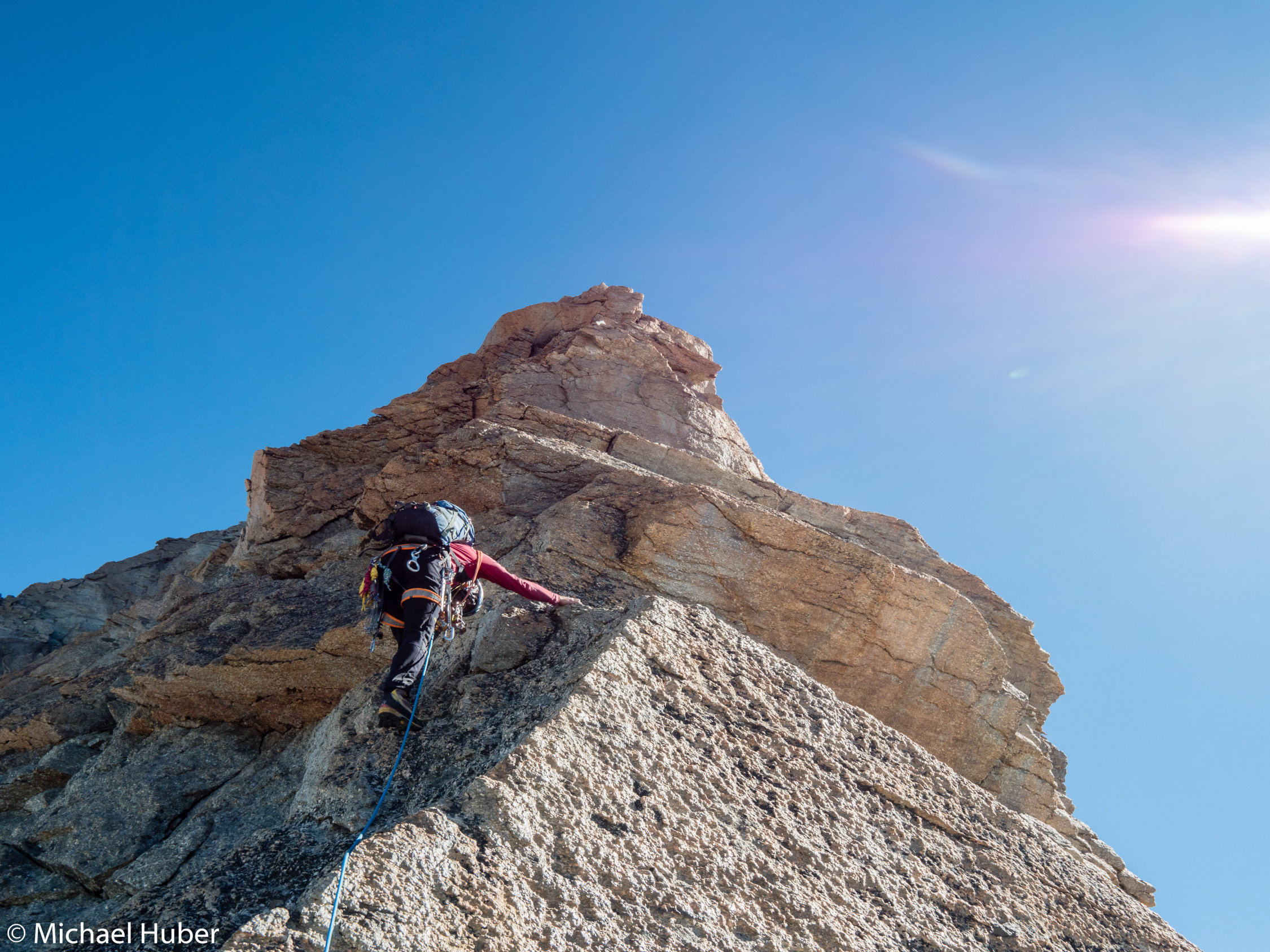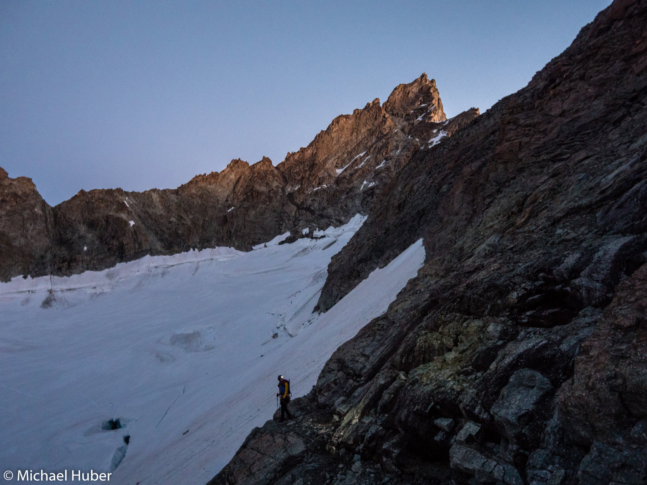 Der Triftgletscher, den man beim Zustieg queren muss ist noch gut eingeschneit. Der anschließende Bergschrund hoch zum oberen Rothornjoch ist in gutem Zustand und kann leicht und ohne großen Aufwand gequert werden. Der komplette Grat ist schnee- und eisfrei und bietet perfekten Klettergenuss an griffigem Granit. Nach der Binerplatte befindet sich etwas Eis am Fels, dank der Sicherungsstifte in diesem Teil ist es aber nie heikel. Abseilen über die Rinne nach der Gabel geht super, viele Abseilstellen vorhanden. Die Rinne ist komplett aper und somit noch dreckiger und brüchiger als sonst - erhöhte Vorsicht geboten! Im weiteren Abstieg könnte die steile Finschneide kurz nach verlassen des felsigen Gipfelaufbaus noch problematisch werden wenn der Firn komplett abschmilzt, im Moment aber noch gut zu begehen. Trittspuren vorhanden. Eine ausführliche Tourenbeschreibung findet ihr unter folgendem Link: https://www.verticalextreme.de/blog/Zinalrothorn-4221m-uuml-ber-Rothorngrat-AD-IV/b-4/