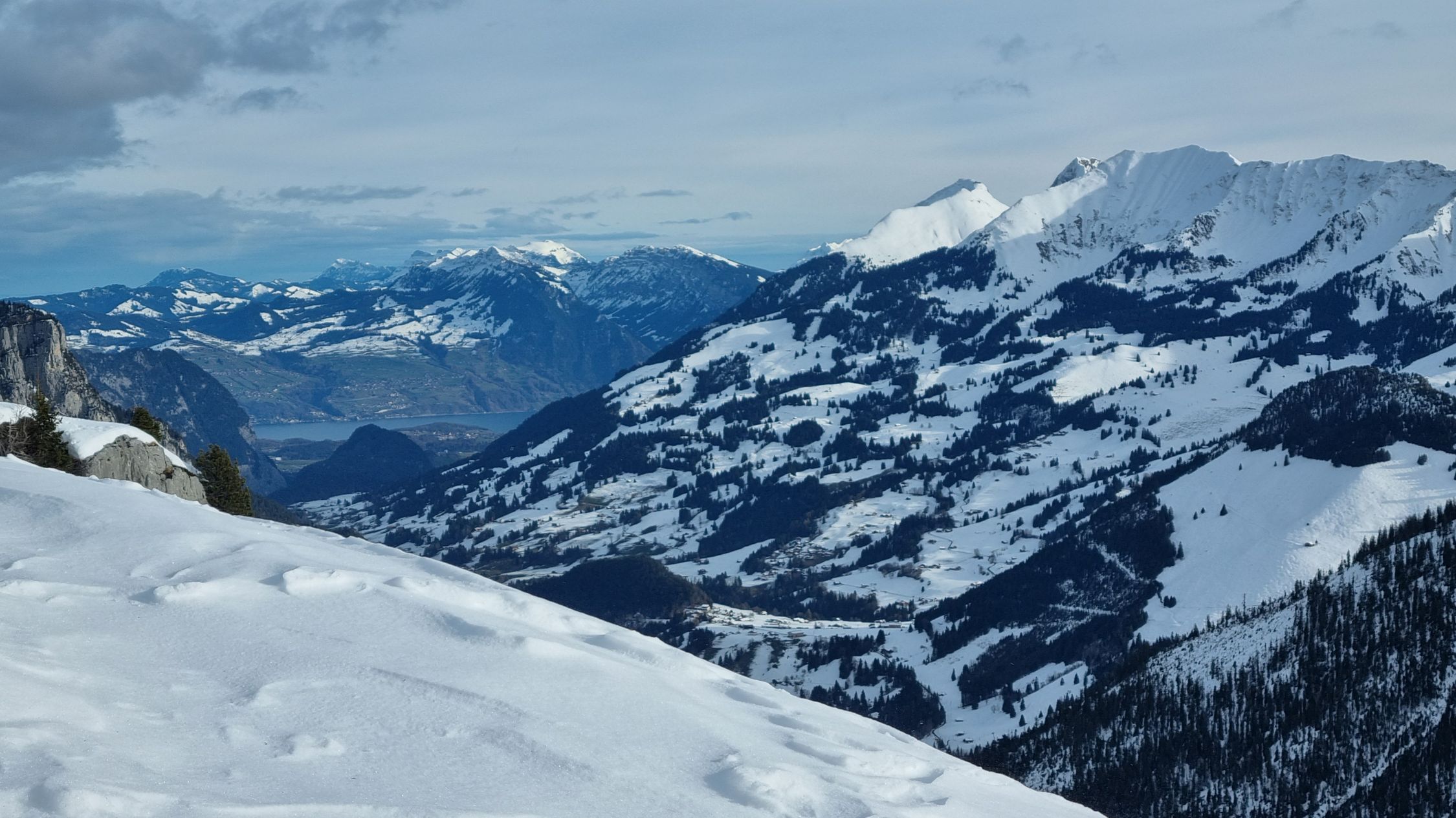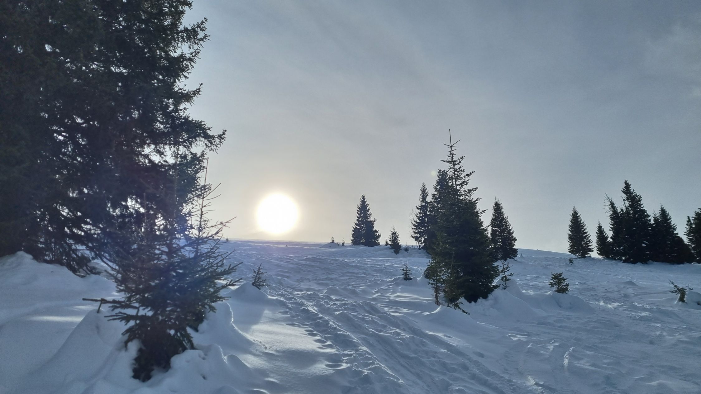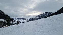 Beim Start ca. 3°, angenehm. Trotz Bewölkung gute Sicht, zeitweise sogar Sonne. Ab Sennhütte windig, auf dem Gipfel stark. Schnee im Aufstieg etwas "klebrig", aber gut zu fahren. Momentan hat's noch genug. Schönes Türli zum Saisonstart ?.