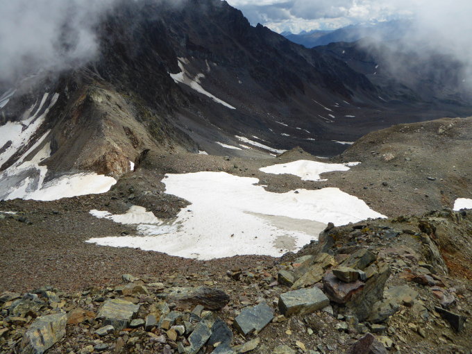 Auf der gesamten Ostseite des Piz Grialetsch teilweise beträchtliche Felsstürze. Geht wohl auf die allgemeine Erwämung und den Gletscherückgang zurück.