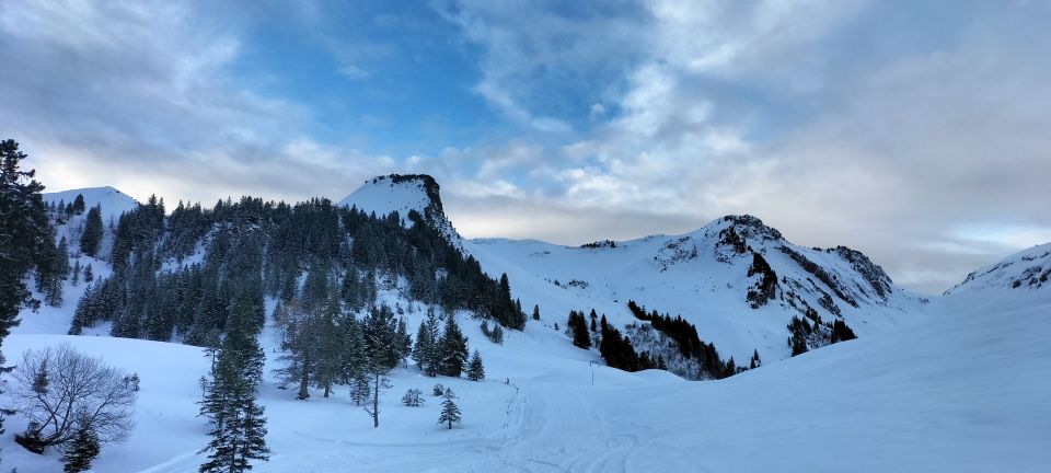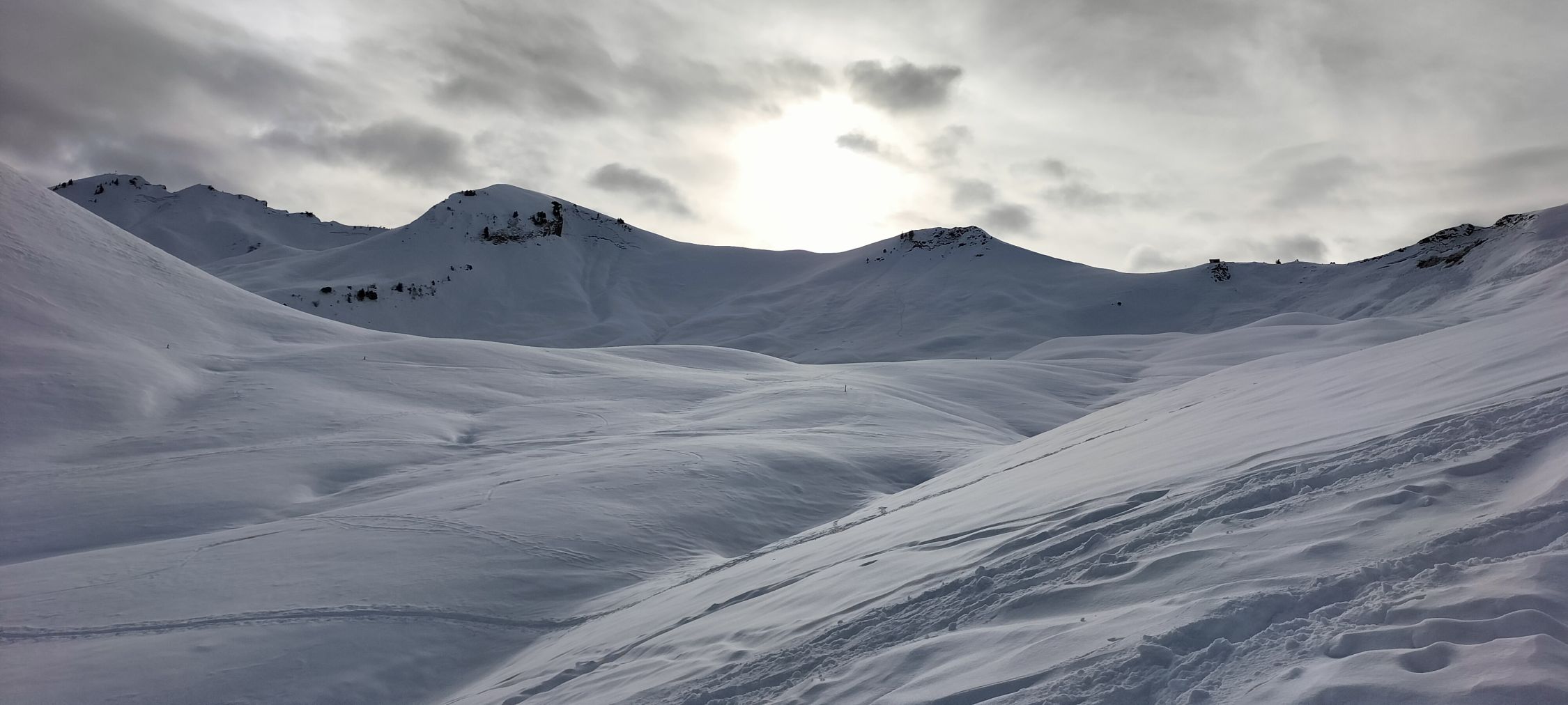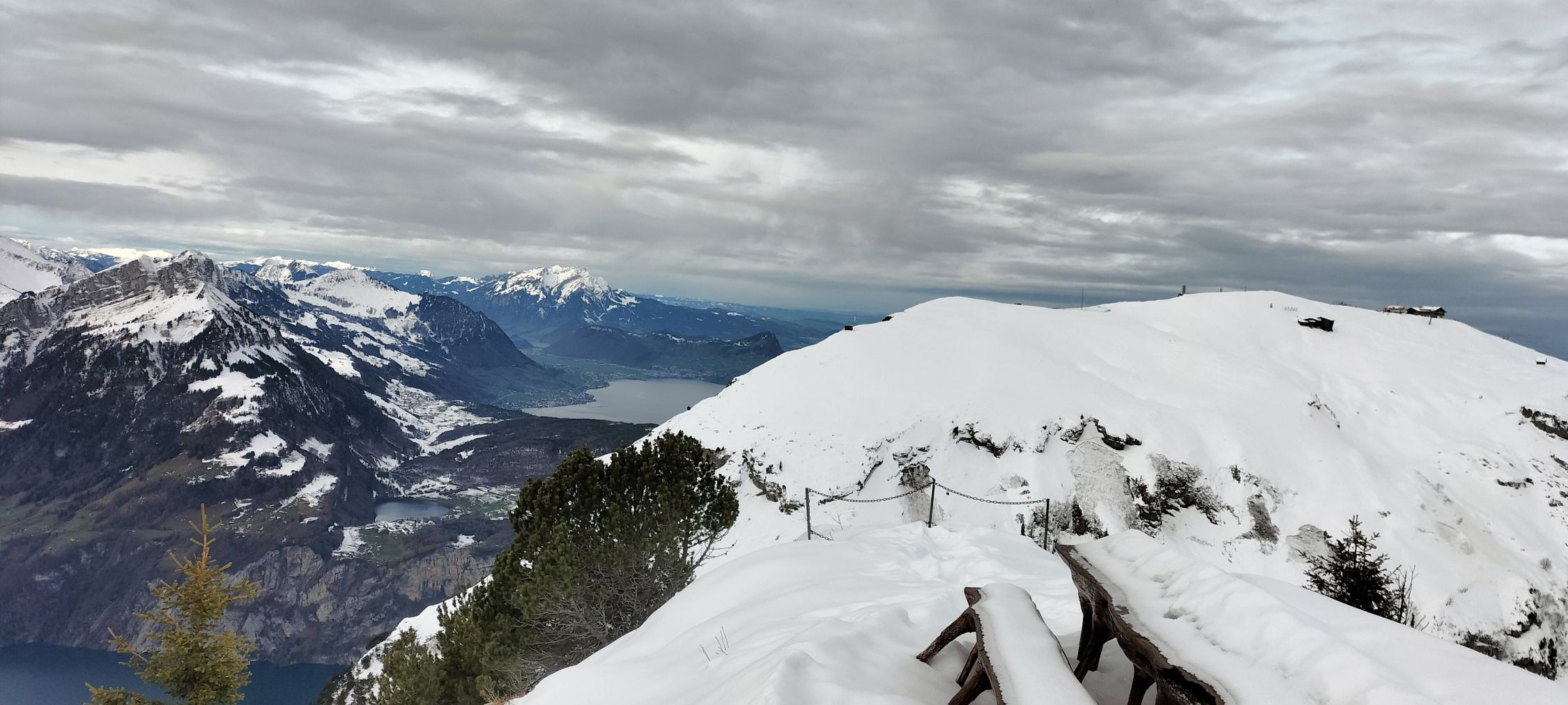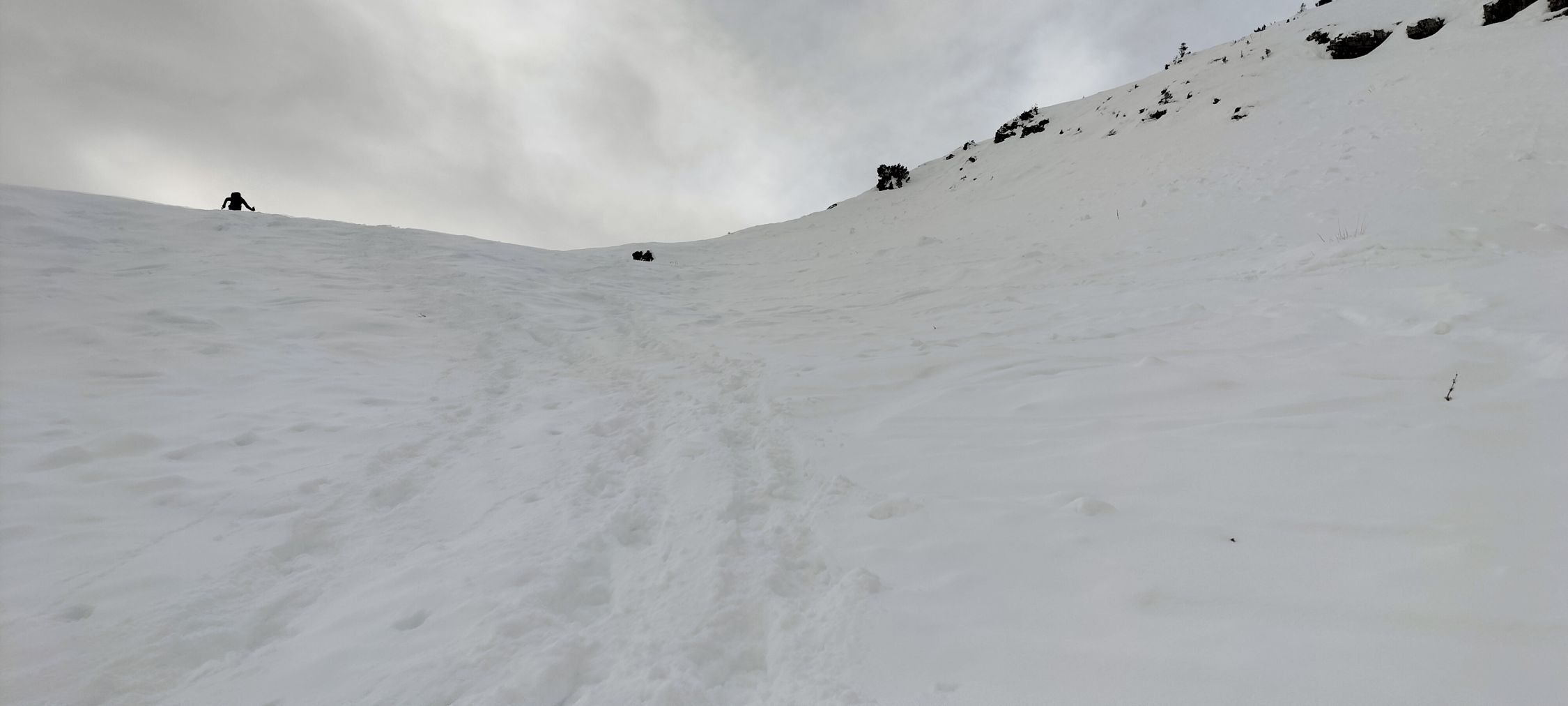 Start der Tour am 9.00 Uhr beim Stoos, das Wetter noch bedeckt, aber immer schöner, gute Unterlage mit 10 cm Pulverschnee vom Vortag.