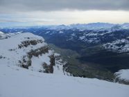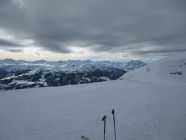Bis hoch zum Stöfeli (1681 m) waren schon die Lifte in Betrieb, es war aber noch nicht allzu viel los. Zudem konnten wir weitestgehend abseits der präparierten Pisten aufsteigen, in meinem Fall auf diese Weise auch wieder absteigen. Letzteres ging problemlos, ohne Rutschereien. Unten war der Schnee am frühen Nachmittag zwar schwer, blieb aber dennoch griffig.