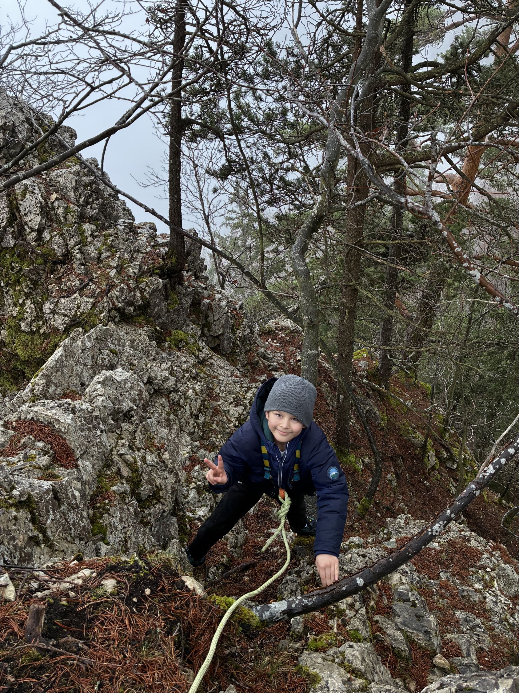 Dennoch schön, mit dem Sohnemann auf einsamen Jurahöhen unterwegs, das Seil kam auch nur für 20 m an einer exponierteren Kante zum Einsatz, der Rest war verantwortbar.
